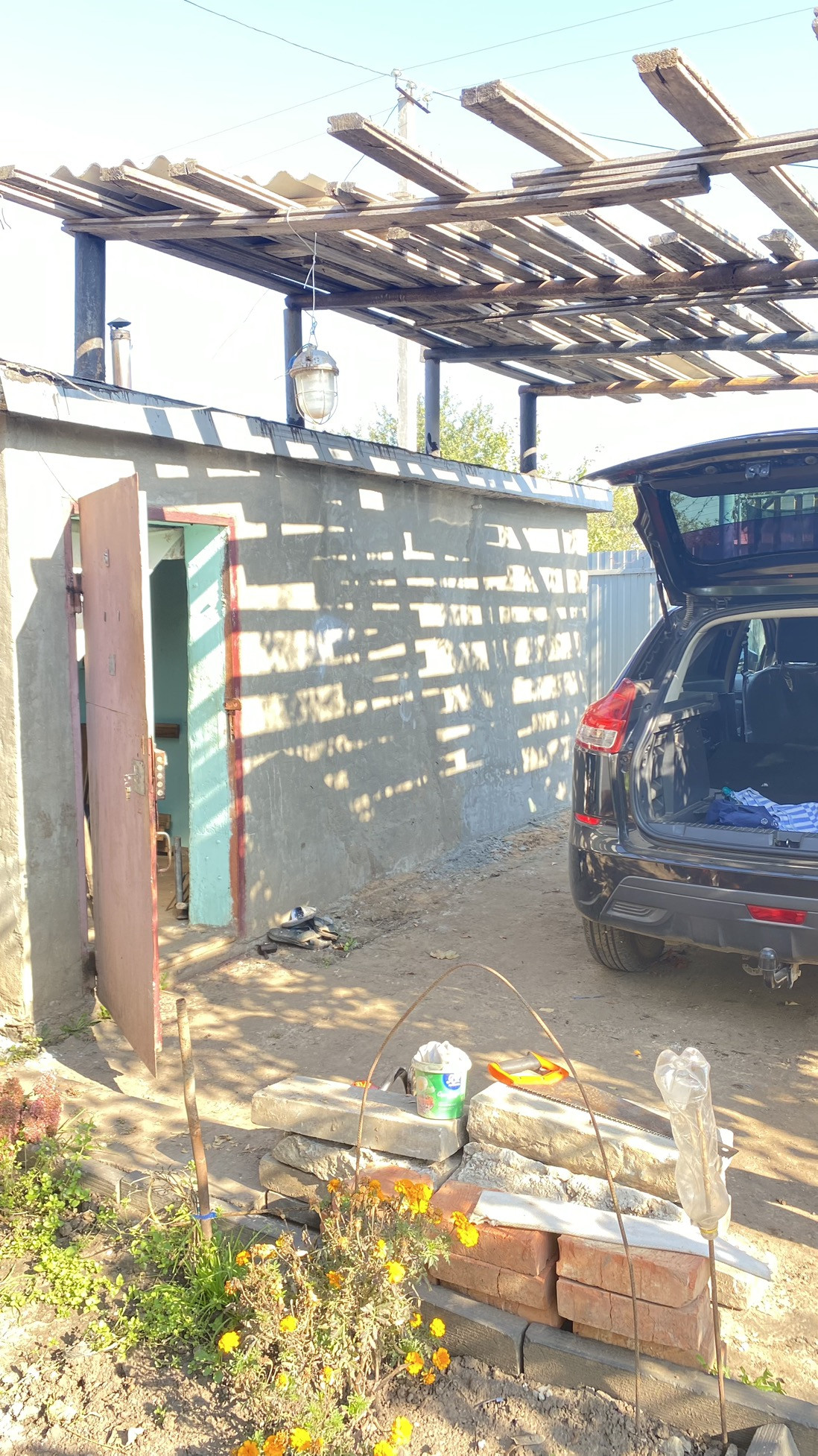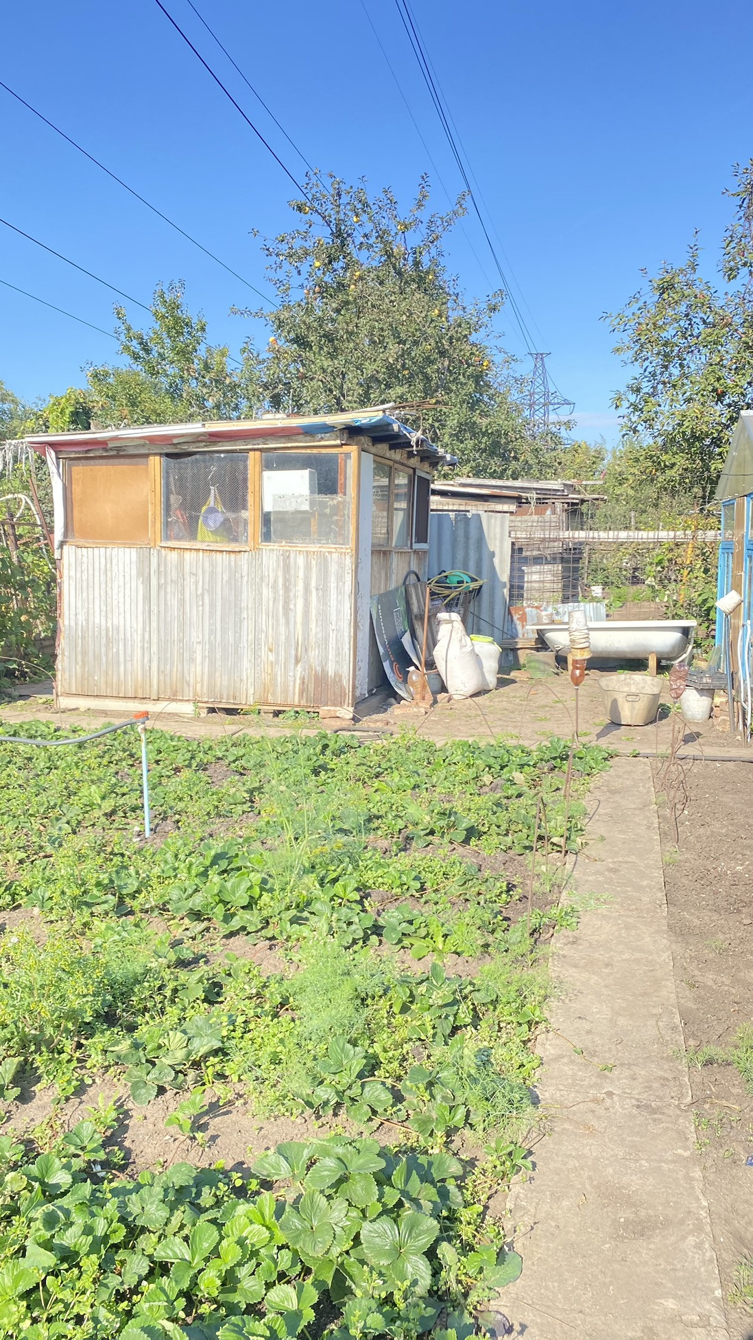 На участке есть трехкомнатный дом ~60кв.м кирпичный, баня кирпичная, сарай-курятник, душ, теплица 8*3 . Бетонирования площадка для авто. Новый забор.