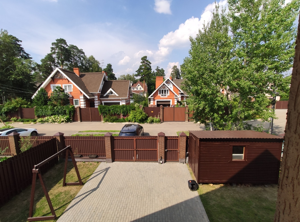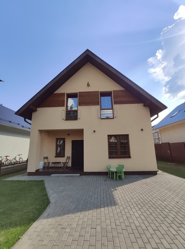 Отмостка дома и двор перед домом вымощены тротуарной плиткой, вокруг дома - газон. Перед воротами - заасфальтированная площадка на 2 машиноместа и во дворе дома еще площадка на 2 машиноместа.