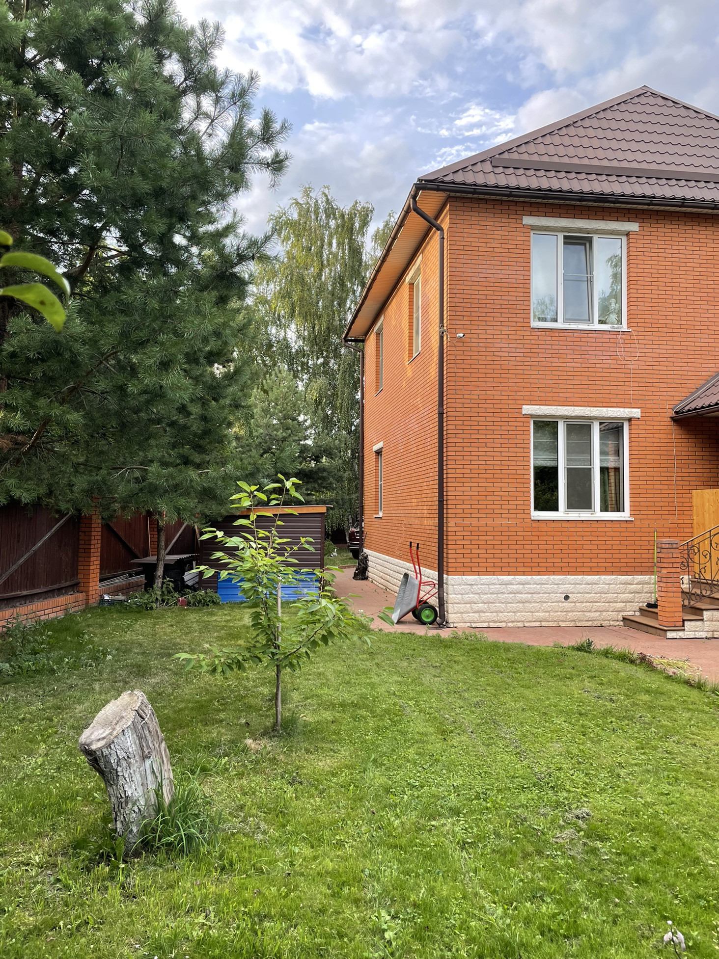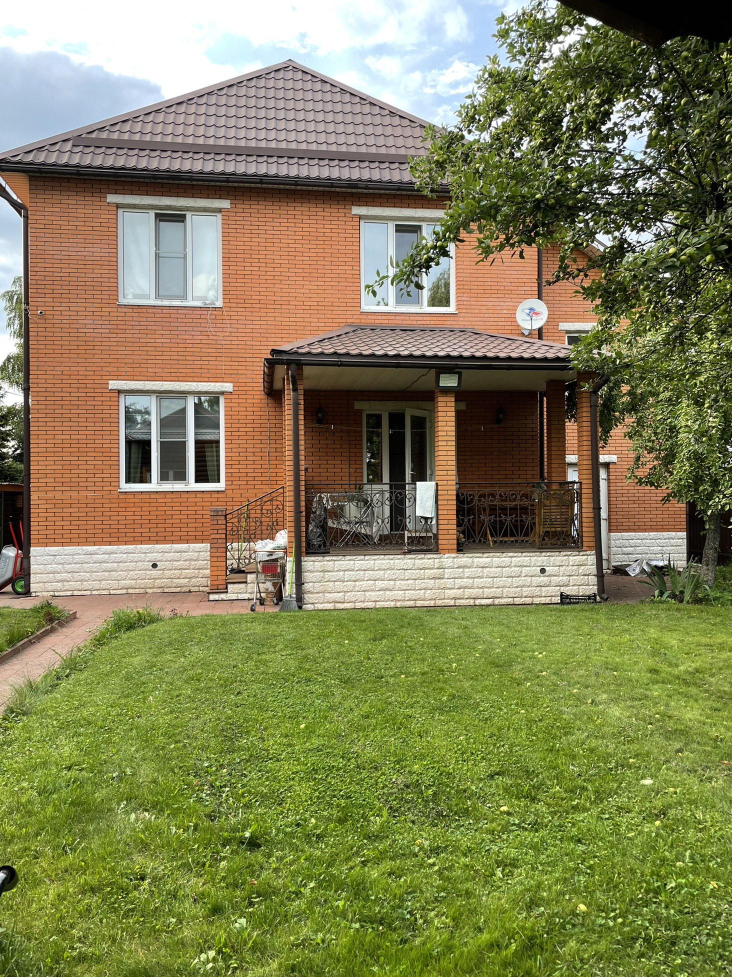 На участке 10 сот расположен в 4-х уровнях, Общей площадью 212 м2 плюс баня 35 м2.