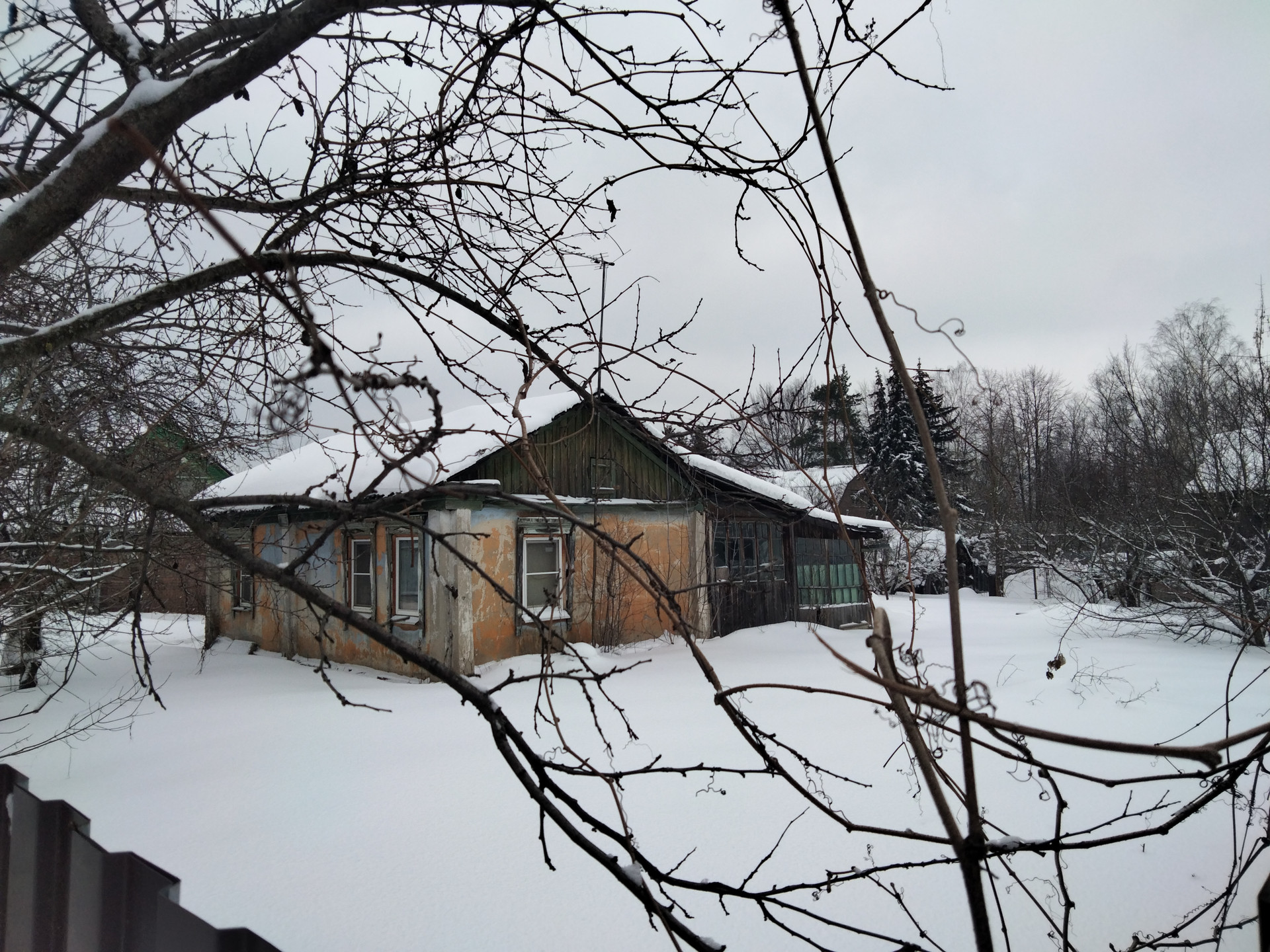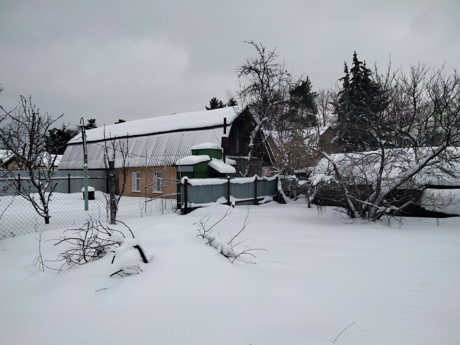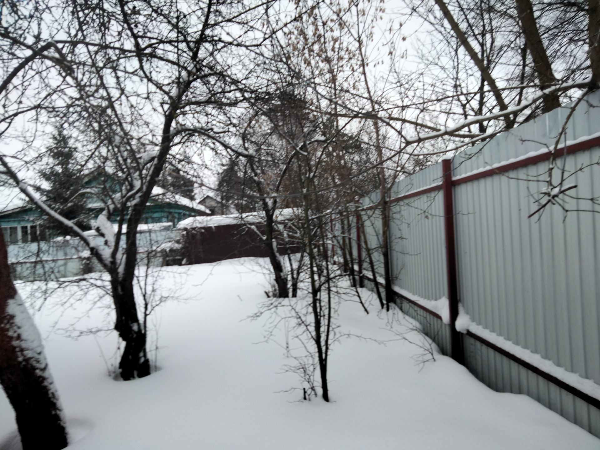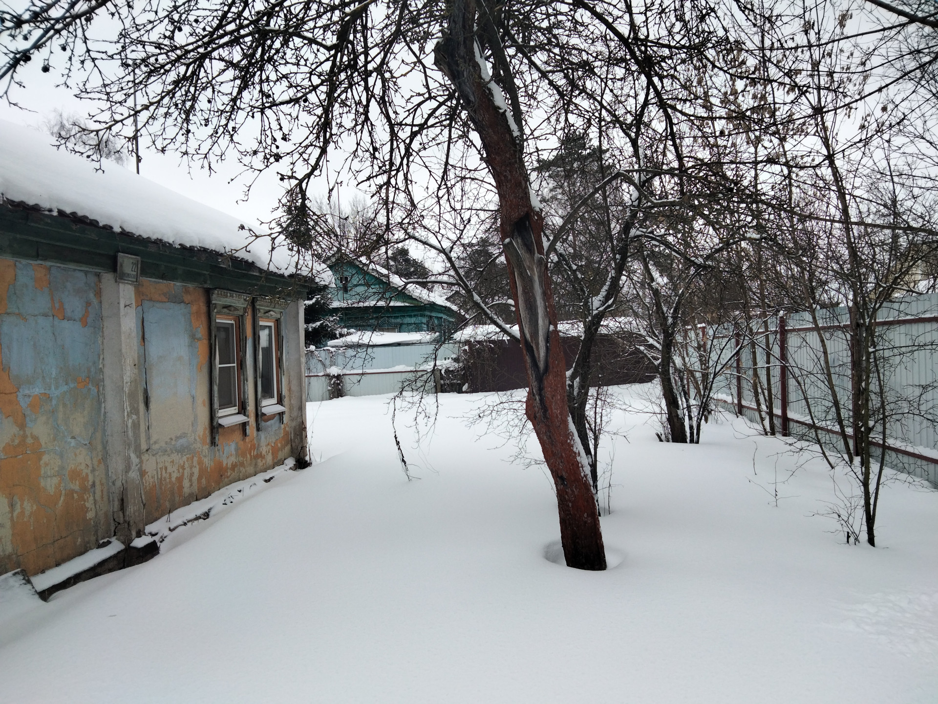 На участке вдоль границ с соседями старые яблони, сливы, клены.