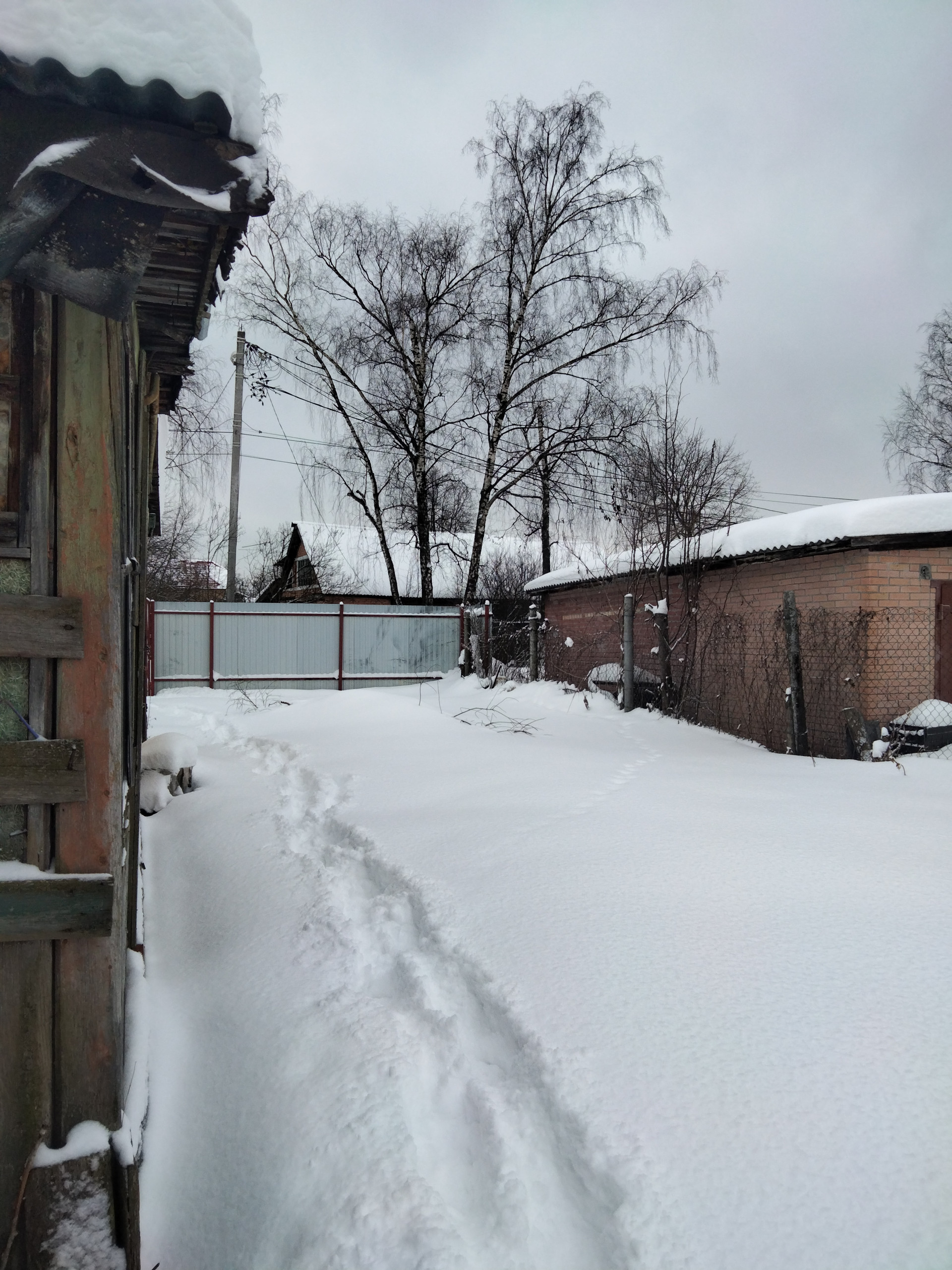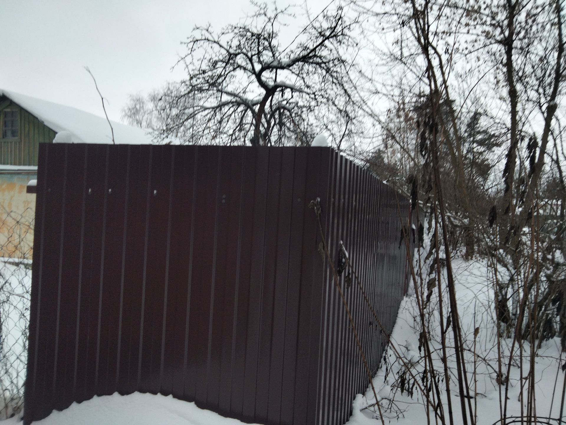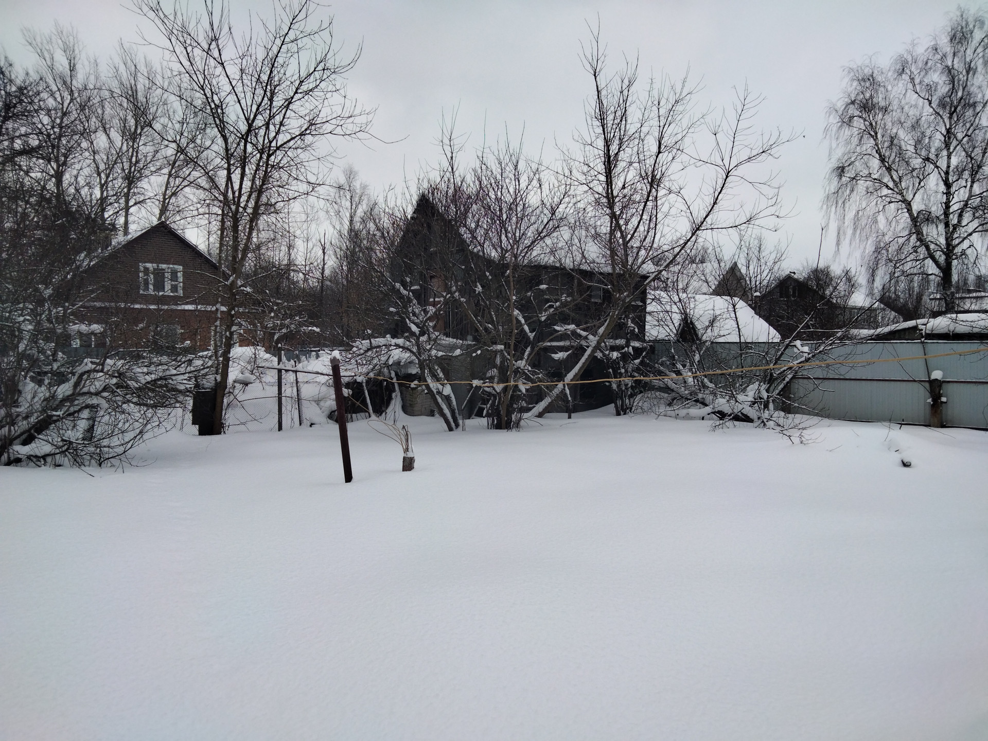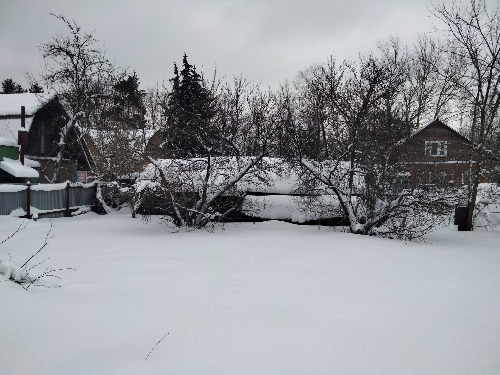 На участке вдоль границ с соседями старые яблони, сливы, клены.