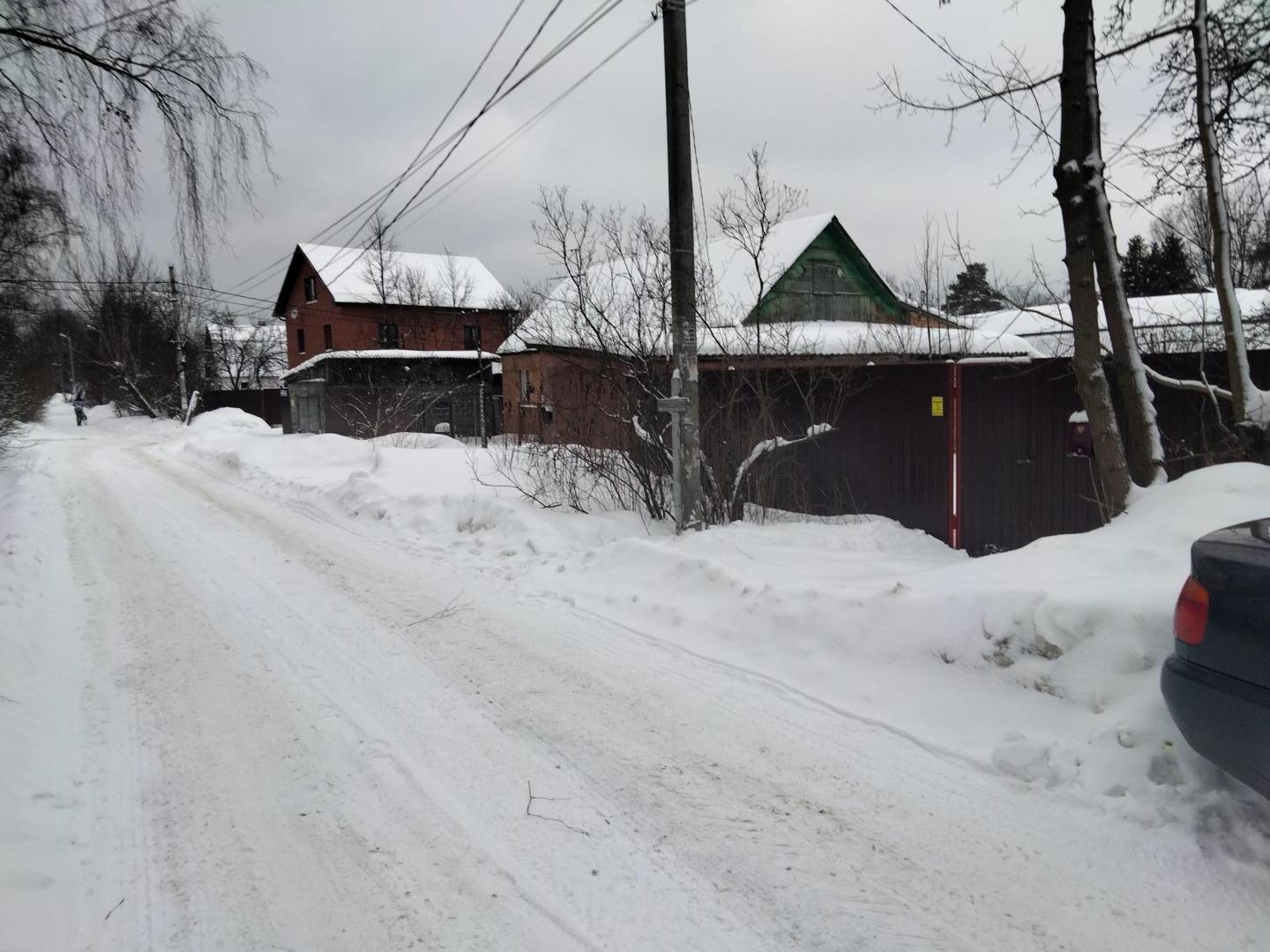 Участок правильной прямоугольной формы, межевание выполнено, по границам споров нет, расположен на второй линии от дороги, забор по фасаду из металлопрофиля с калиткой и воротами, круглогодичный подъезд, дороги регулярно чистят, асфальт до ворот, между соседями забор из сетки рабицы и профлиста, на участке один деревянный сарай под снос, другой первый этаж кирпичный (можно устроить летнюю кухню), второй деревянный.