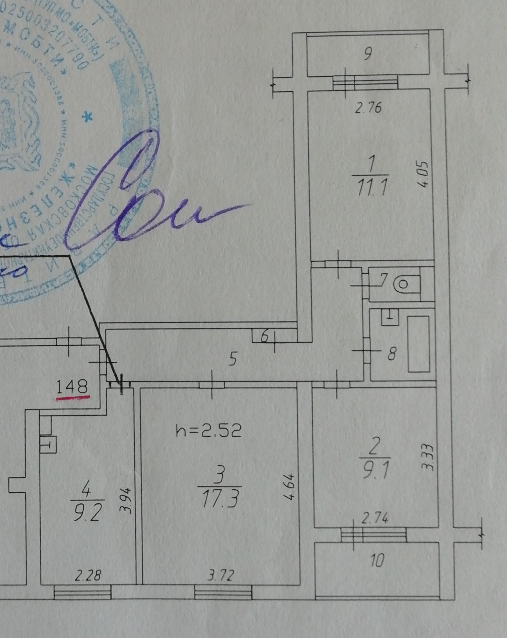 Высота потолков 2.65 м