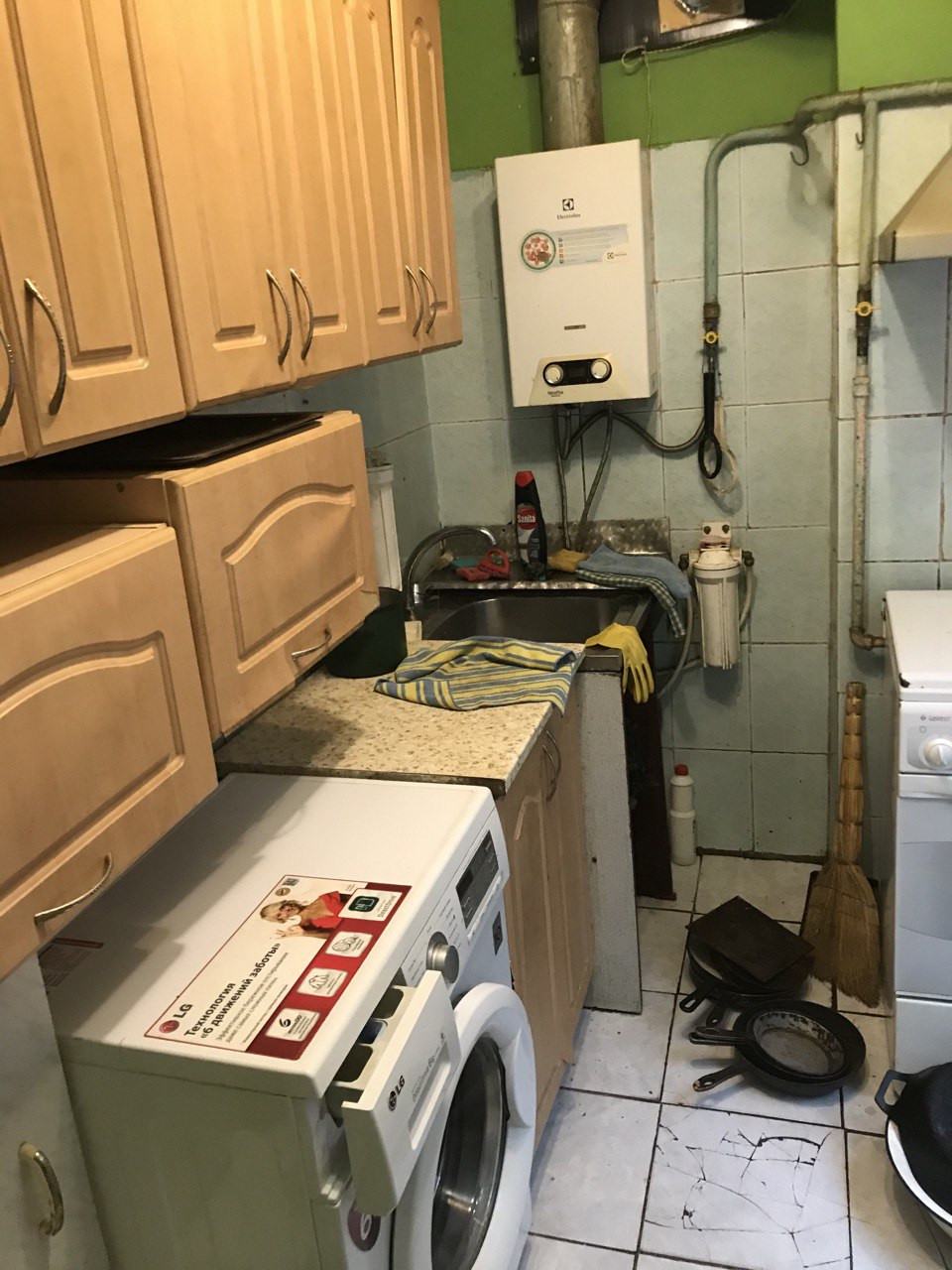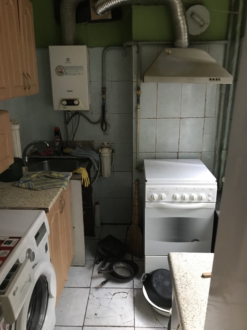 На кухне газовые плита и водонагреватель для ГВС.