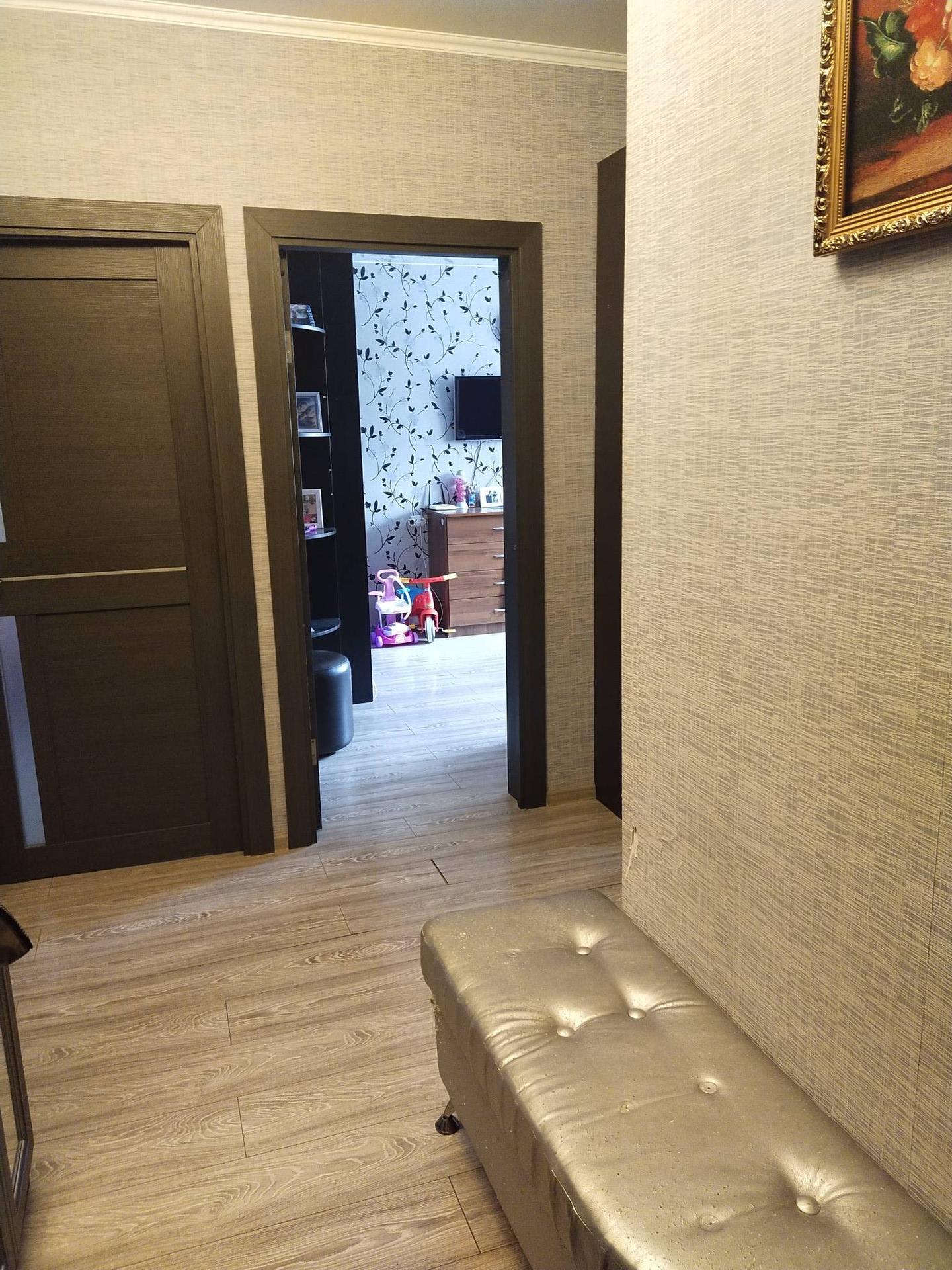 Продается теплая,светлая квартира в центре города с двумя лоджиями с  качественным ремонтом. Дом серии П-44Т 2014 г. Комнаты изолированные 19 кв.м.(лоджия 3,8 кв.м.)  и 15 кв.м.(лоджия 4,8 кв.м.) В подарок покупателю остаётся встроенный кухонный гарнитур, диван на кухне. Рaзвитая инфpаcтpуктуpa. В шаговой доступности школы, детские сады, бассейн, торговые центры, поликлиники, церковь. Большая оборудованная детская площадка, столы для настольного тенниса,волейбольно -баскетбольная площадка, столы для настольного тенниса. Ухоженная территория перед домом. В 12 минутах ходьбы станция Железнодорожная.