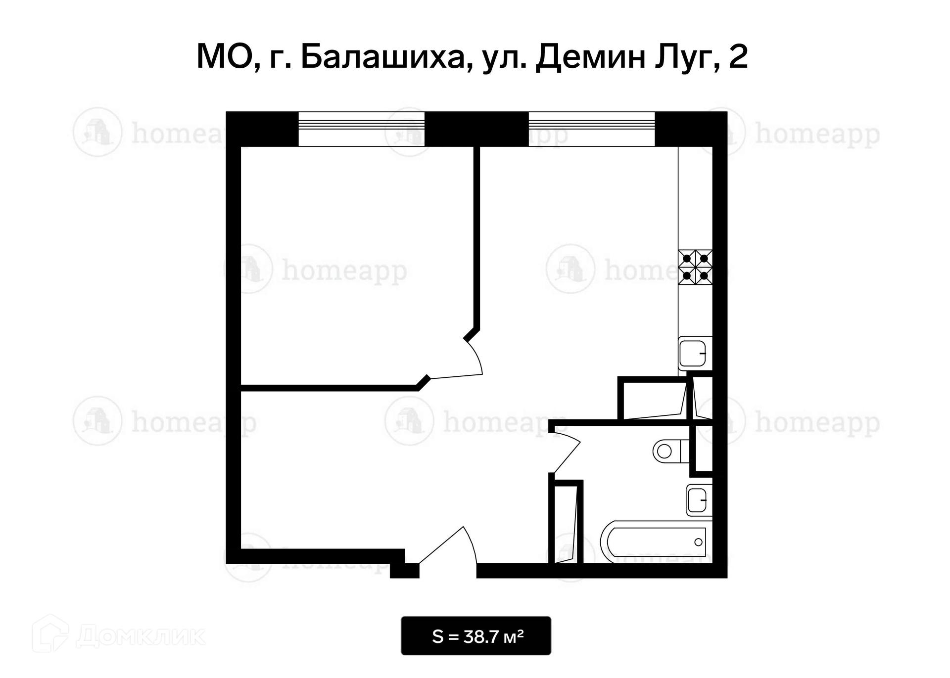 Общая площадь 38.7 м2