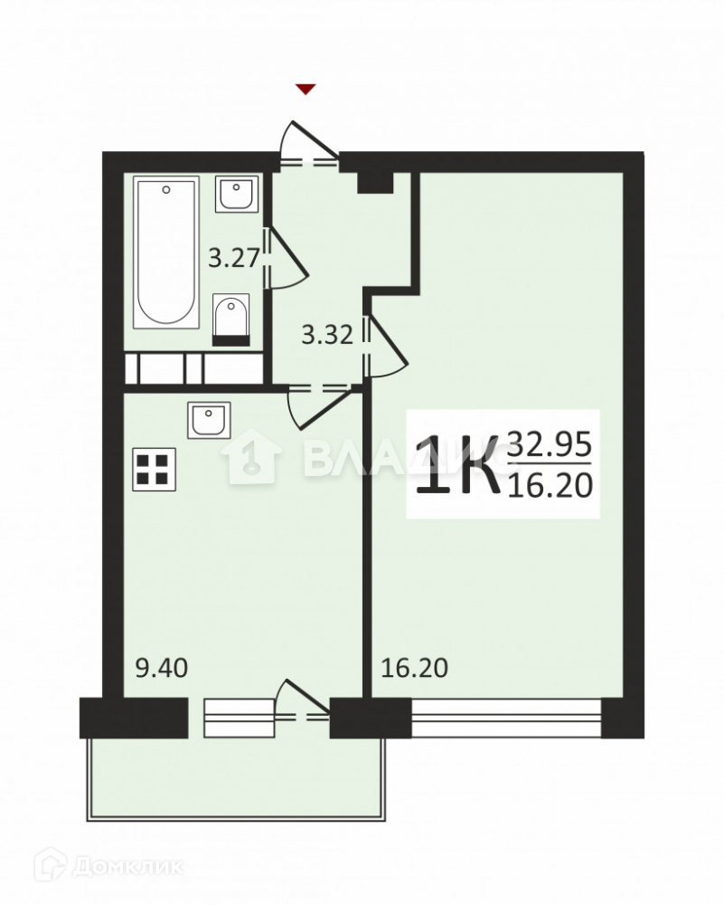 Общая площадь 33 м2