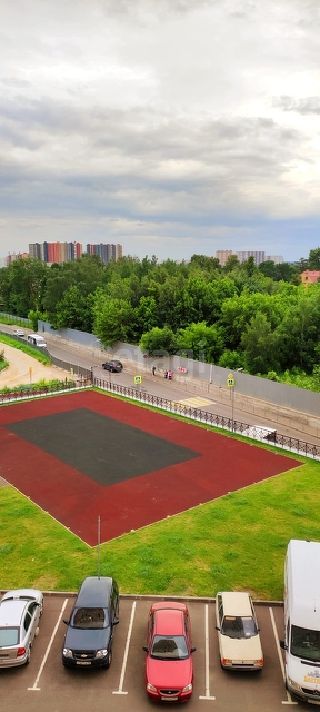 Окна на спортивную площадку и лес.