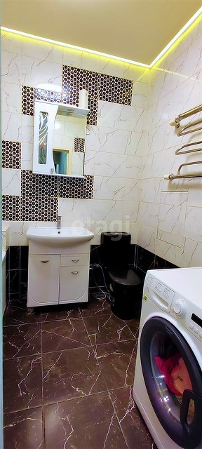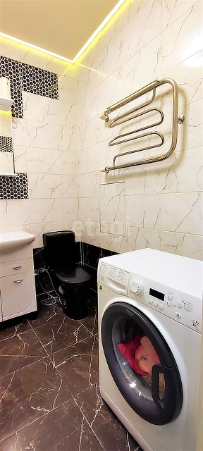 Санузел совмещенный 4,5 кв м выложен плиткой.