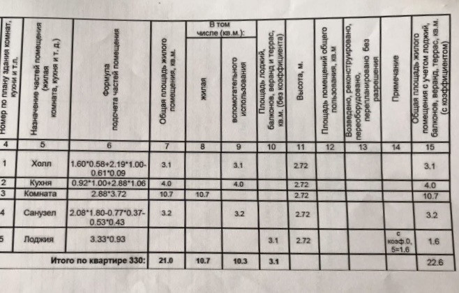 Общая площадь 22.6 м2