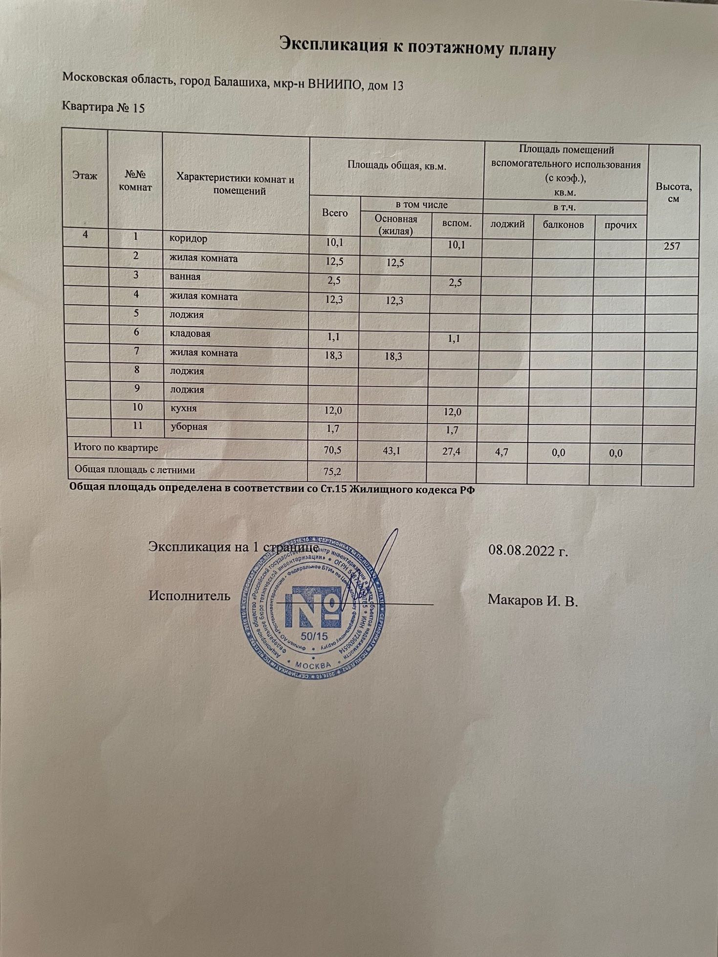 Общая площадь 75.2 м2