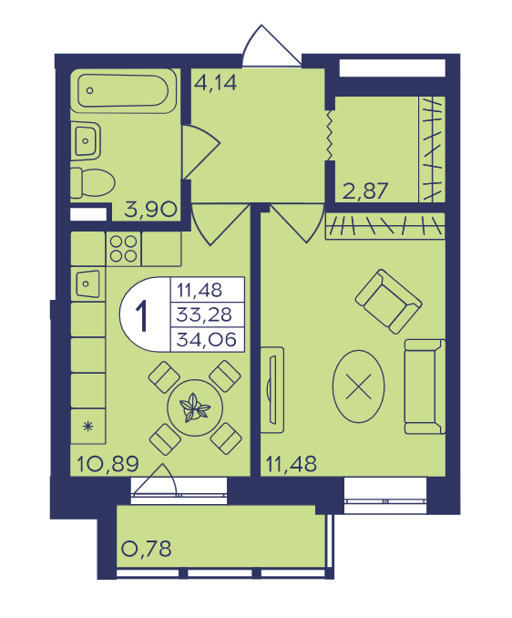 Общая площадь 33.71 м2