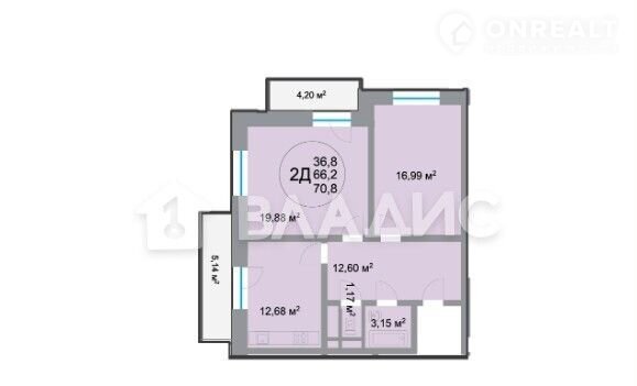 Общая площадь 66,5 метра (без учета балкона) 20 этаж 24-этажного дома. Кухня 12,68 метров.