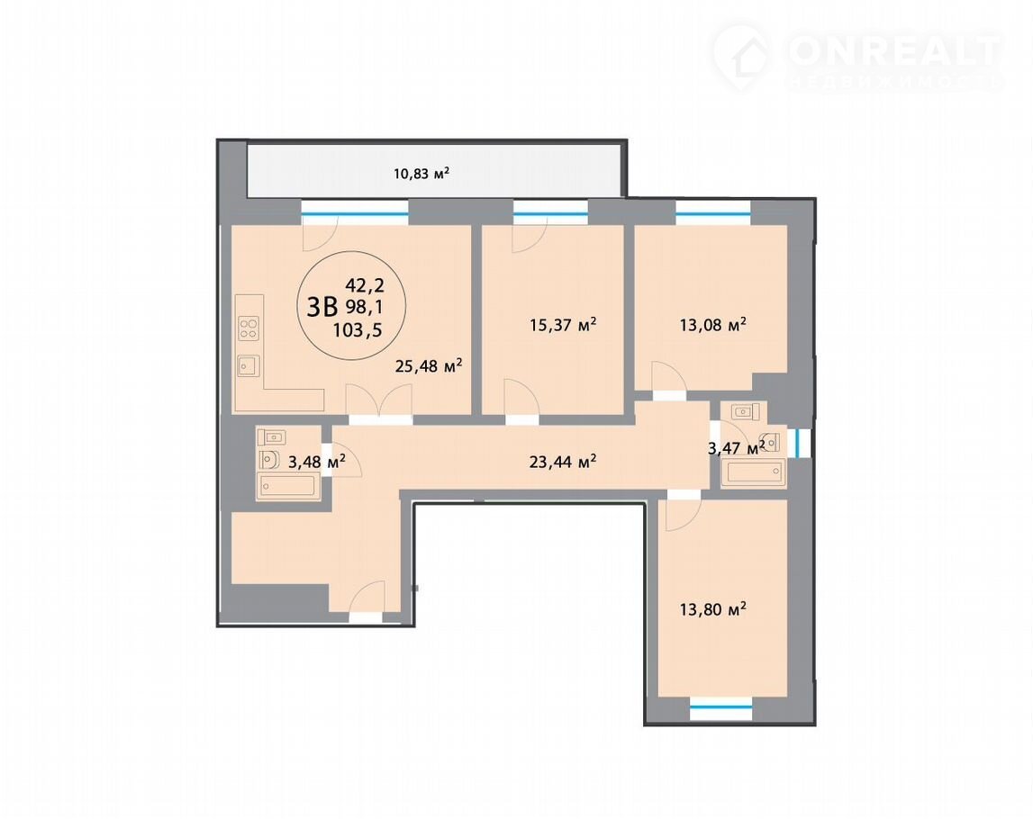 Общая площадь 103.5 м2