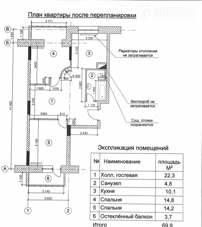 Общая площадь 70 м2