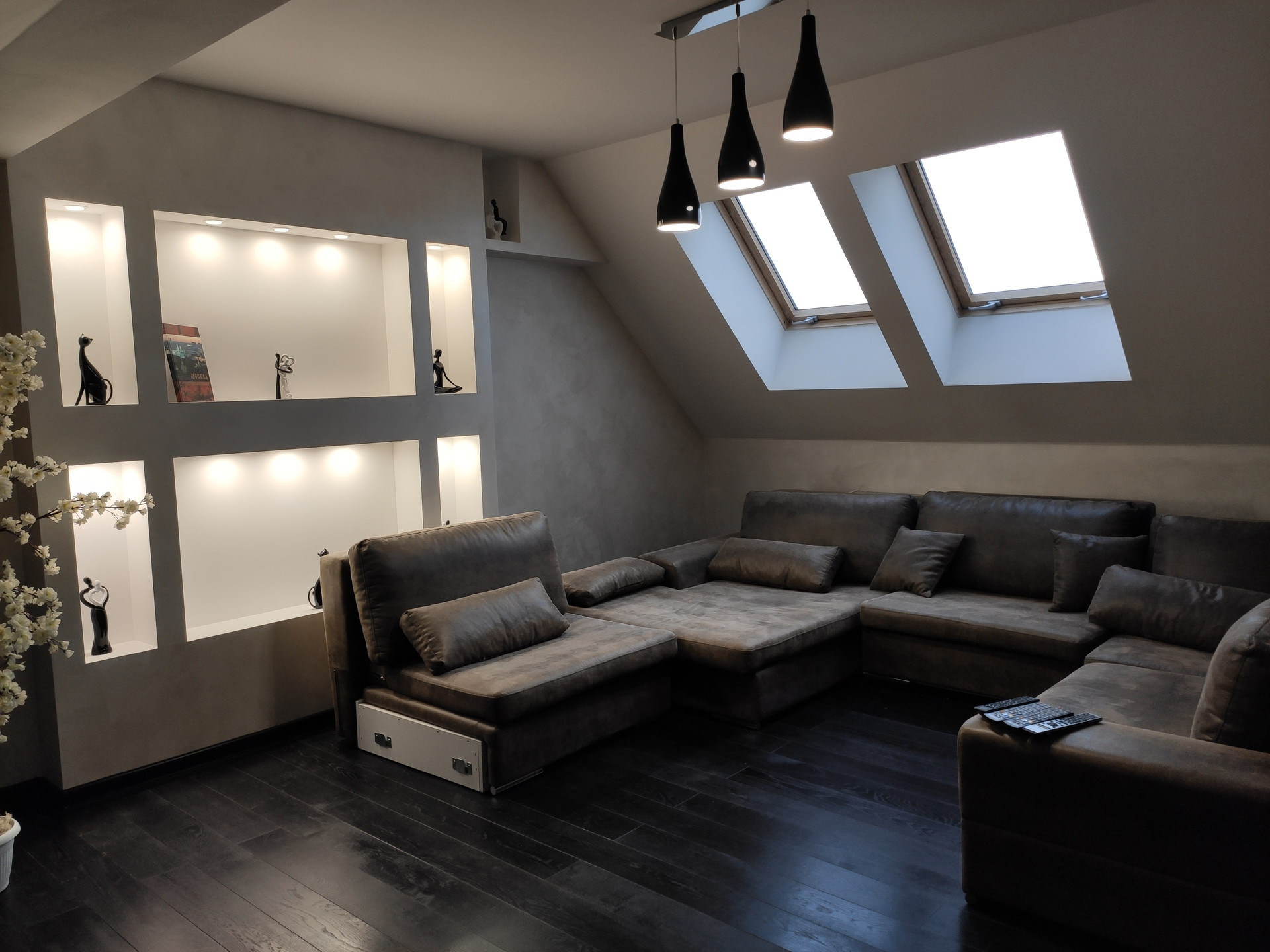 -Второй уровень: кухня-гостиная с балконом, спальня, санузел.