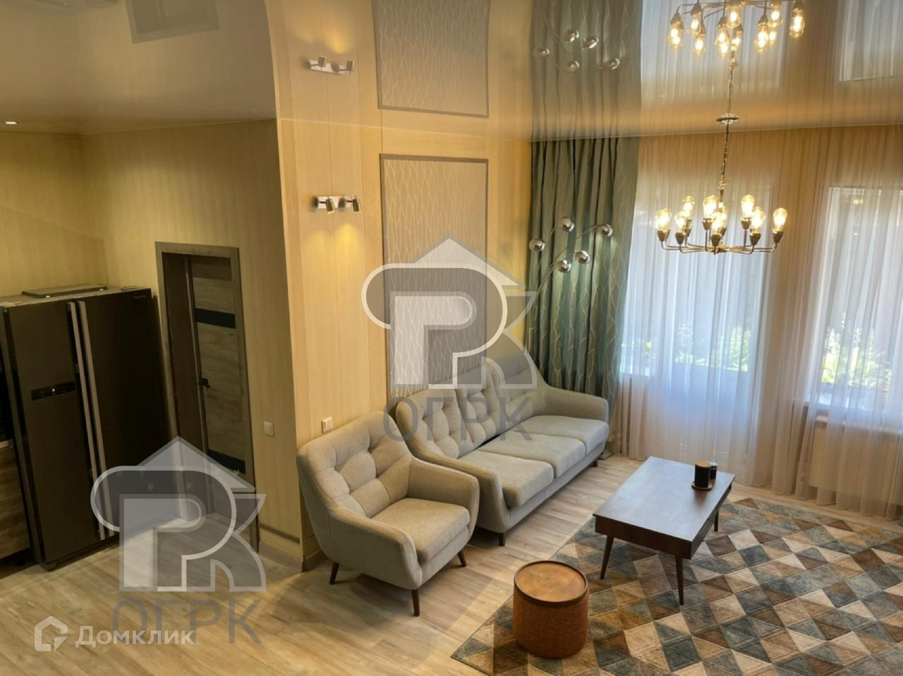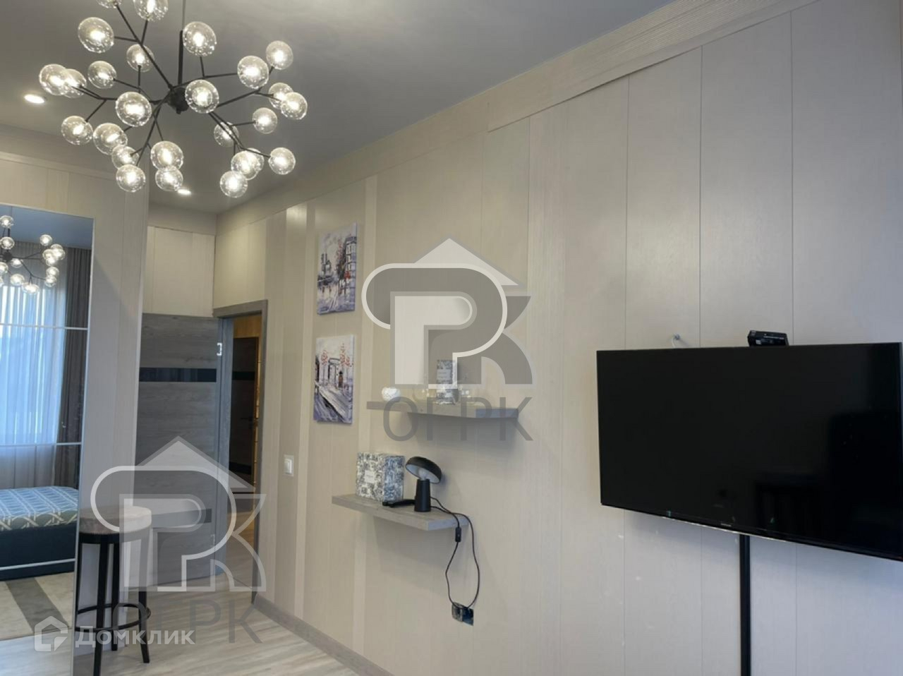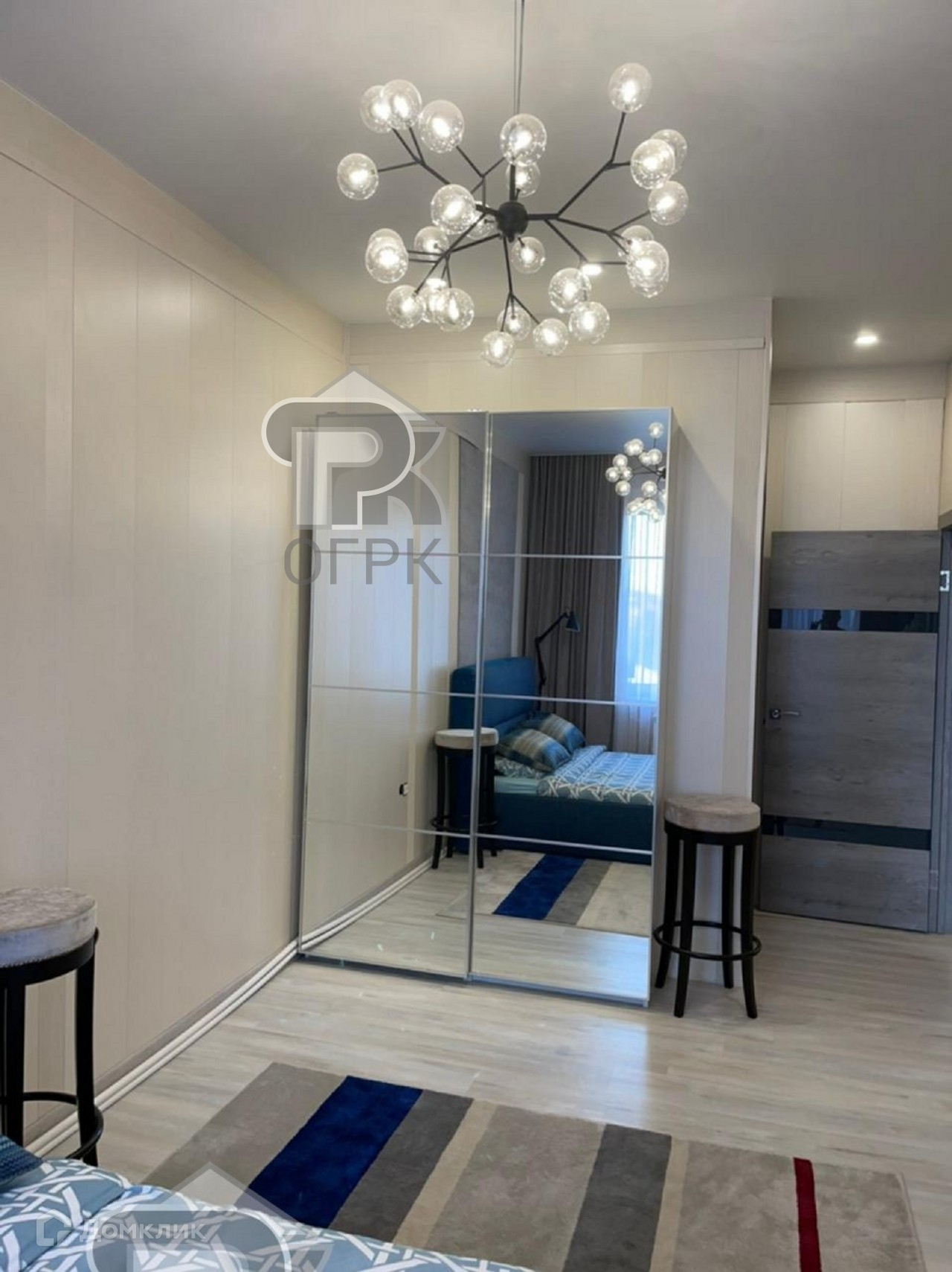 Дизайнерский ремонт, неординарные решение разграничения пространства, новая техника и мебель.