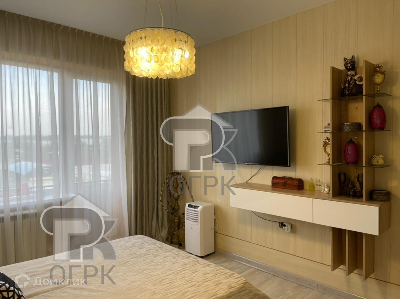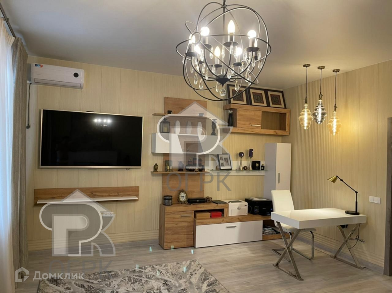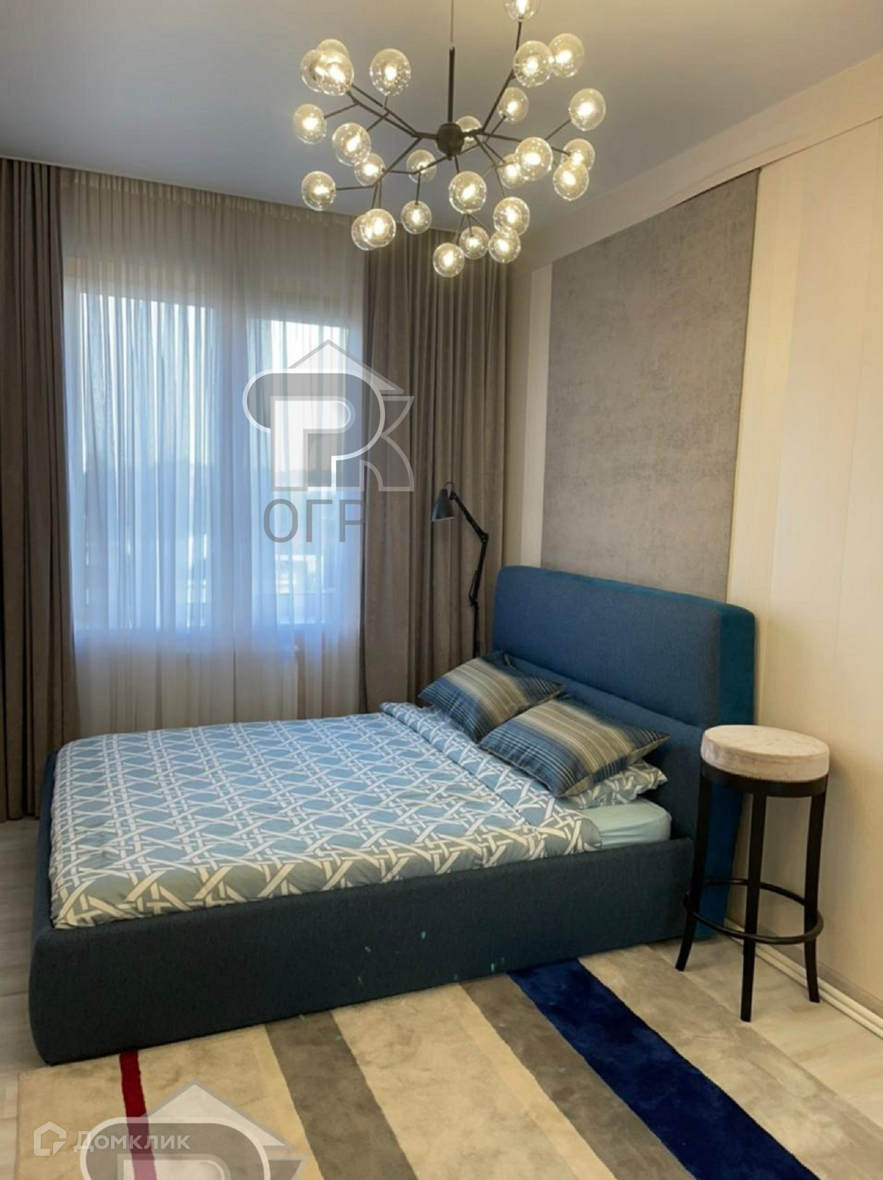 Дизайнерский ремонт, неординарные решение разграничения пространства, новая техника и мебель.