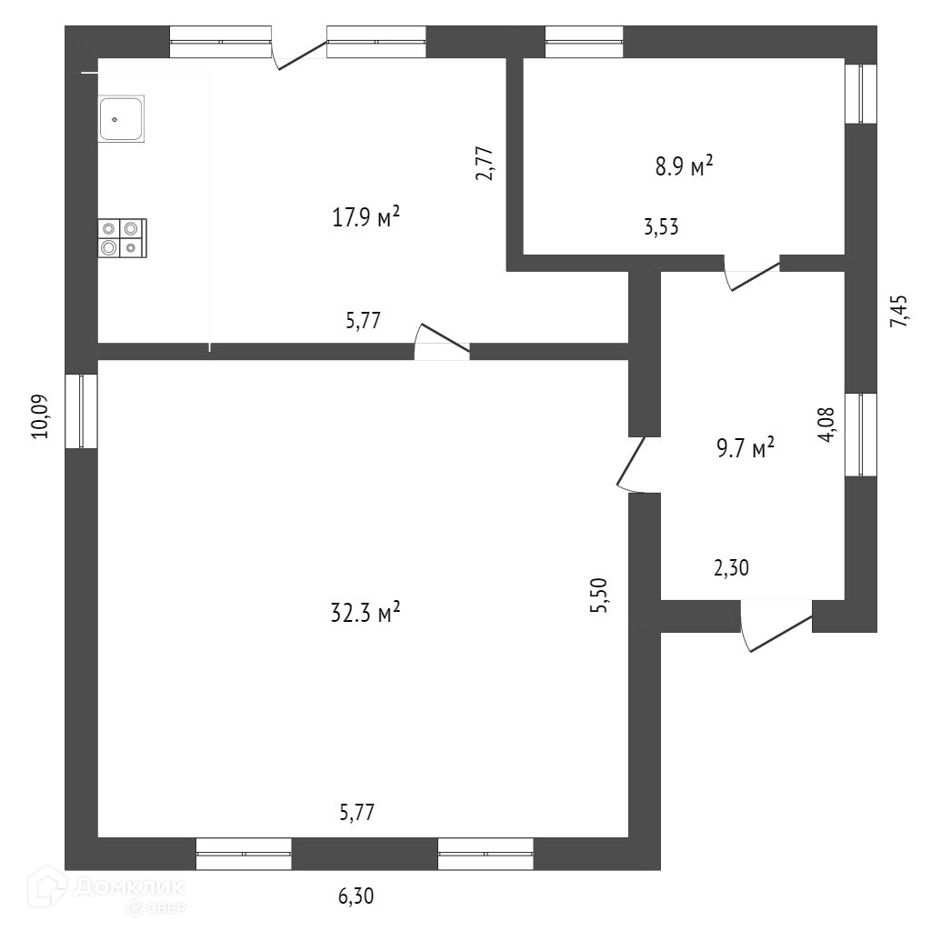 Общая площадь 68.8 м2