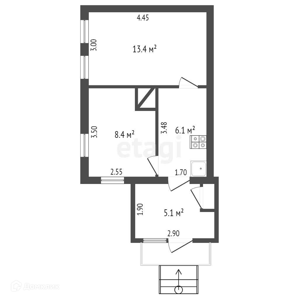 Площадь: 33,4 кв.м.