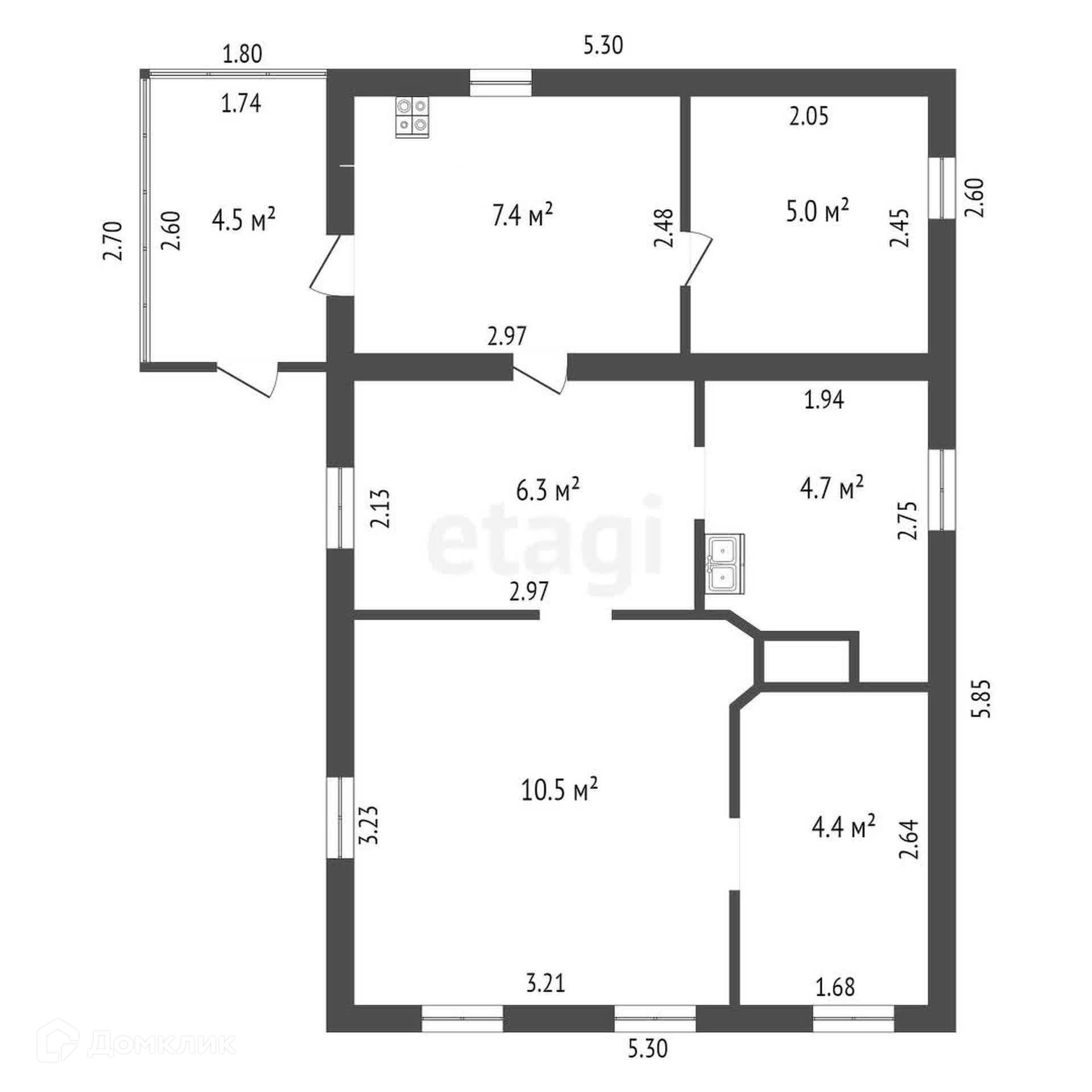 1-этажный дом, 42.8 м2, на продажу в Балашове, улица Николая Островского, 80
