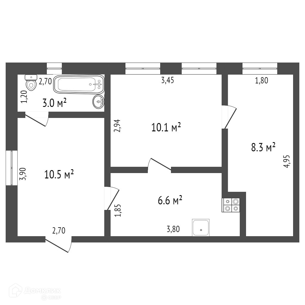 Общая площадь 38 м2