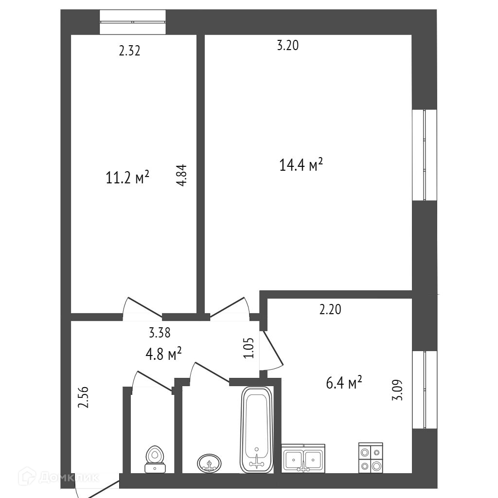 Общая площадь 40.4 м2