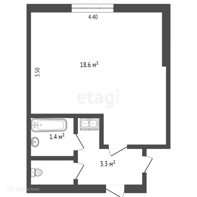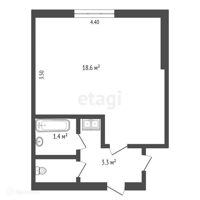 Общая площадь 18.6 м2