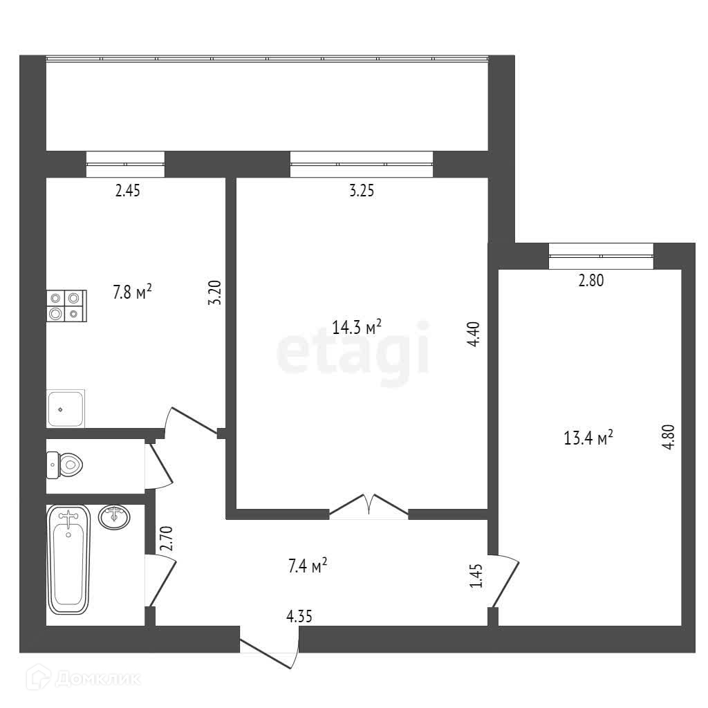 Балкон, лоджия 1 балкон