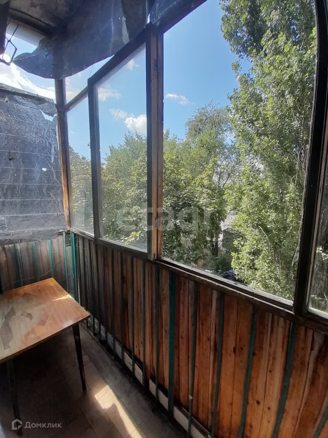 В квартире гостиная и небольшая спальня, имеется балкон(застеклен), окна деревянные.