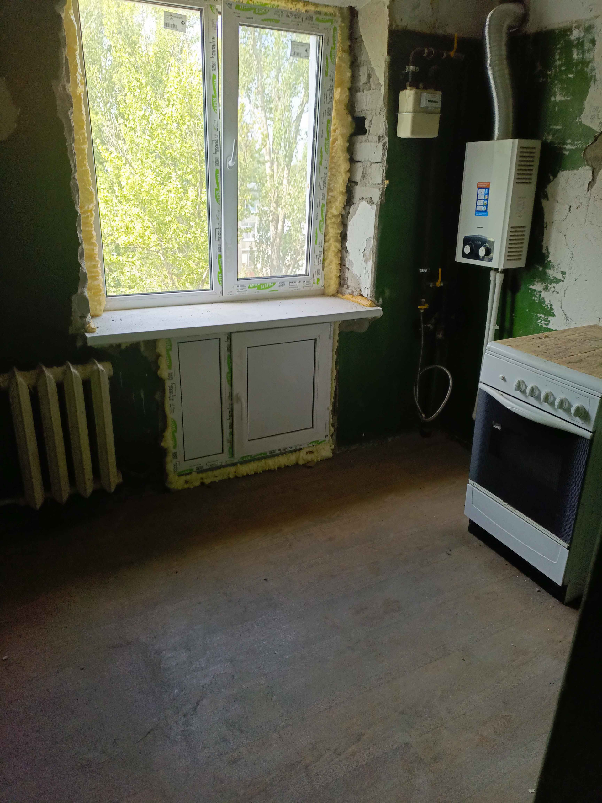В квартире установлены новые пластиковые окна, новая газовая колонка, счетчик на газ и на воду, новые водяные трубы.