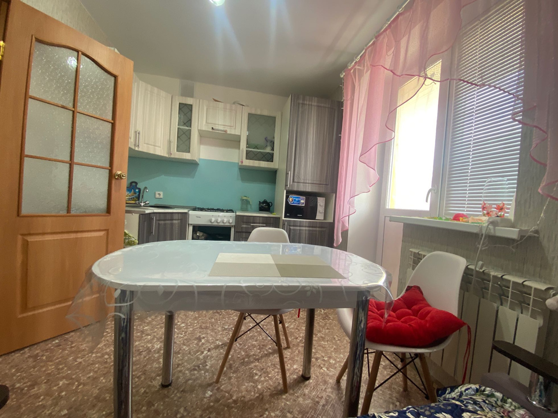 Квартира находится в тихом зеленом районе,окна выходят на восток.
