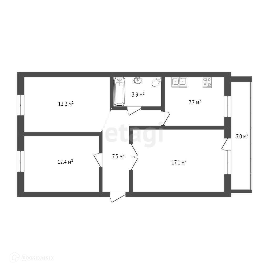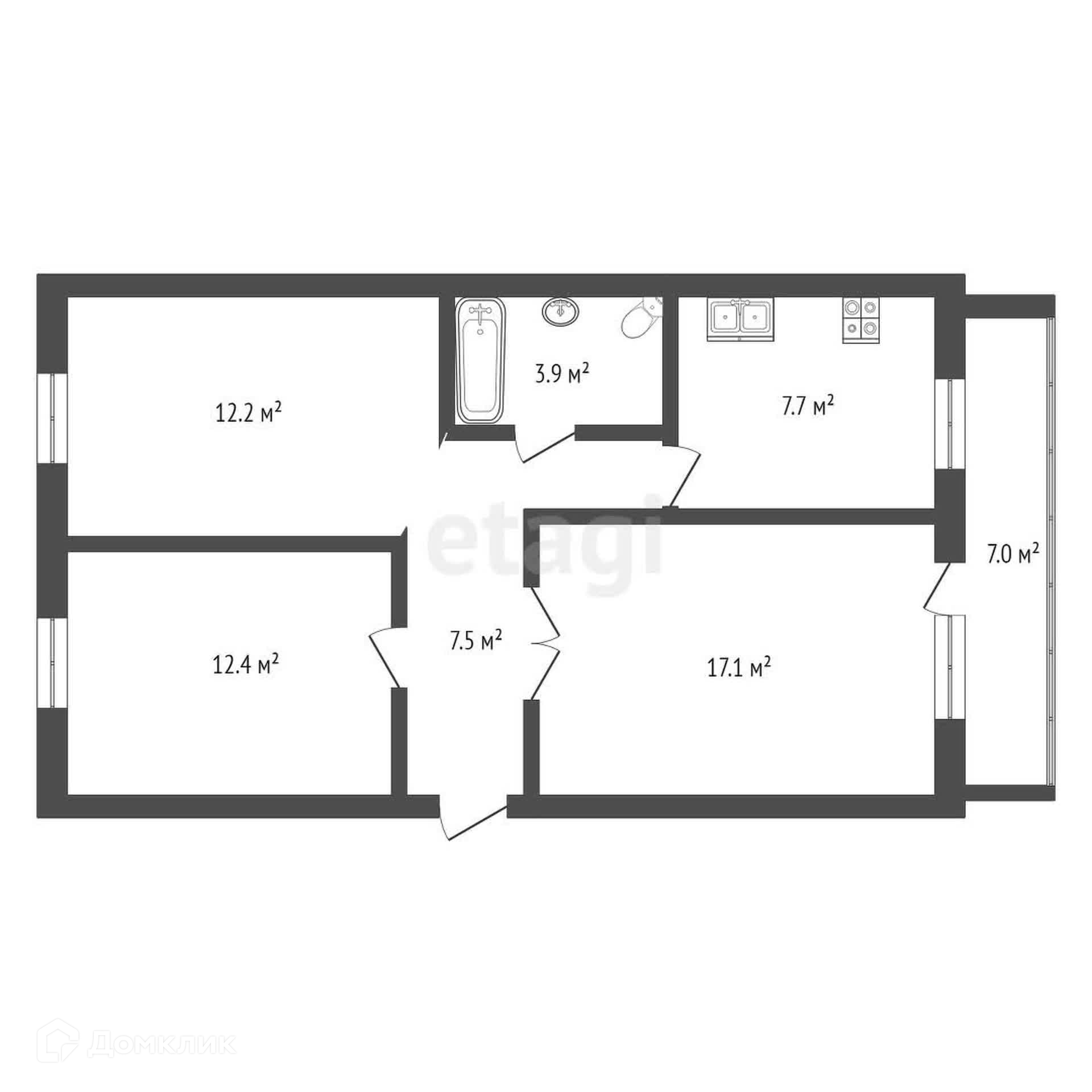 Общая площадь 61.2 м2