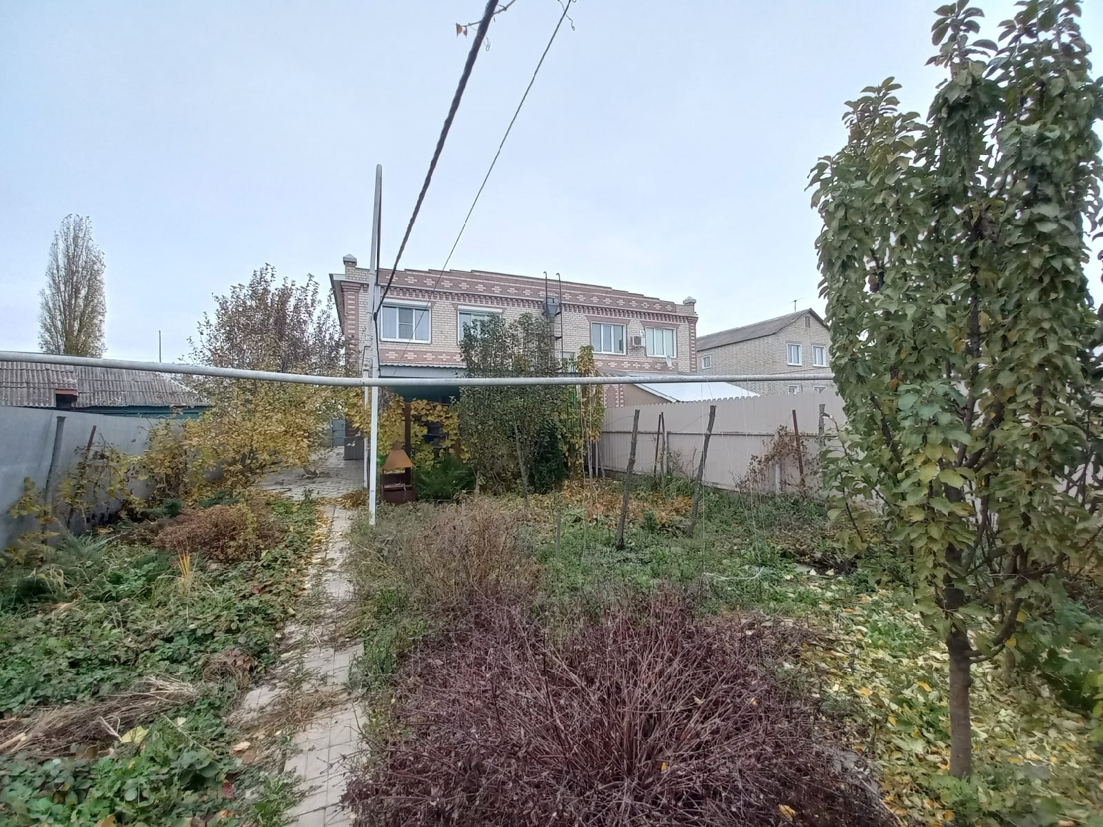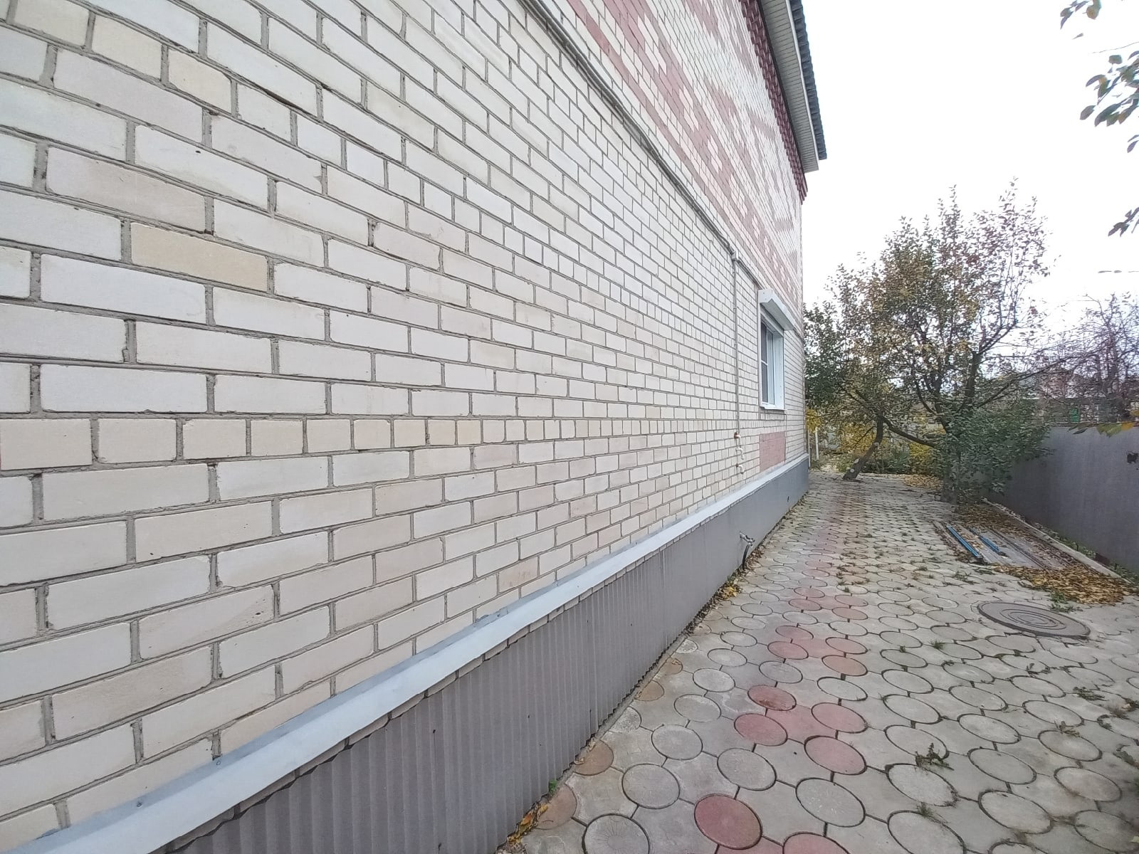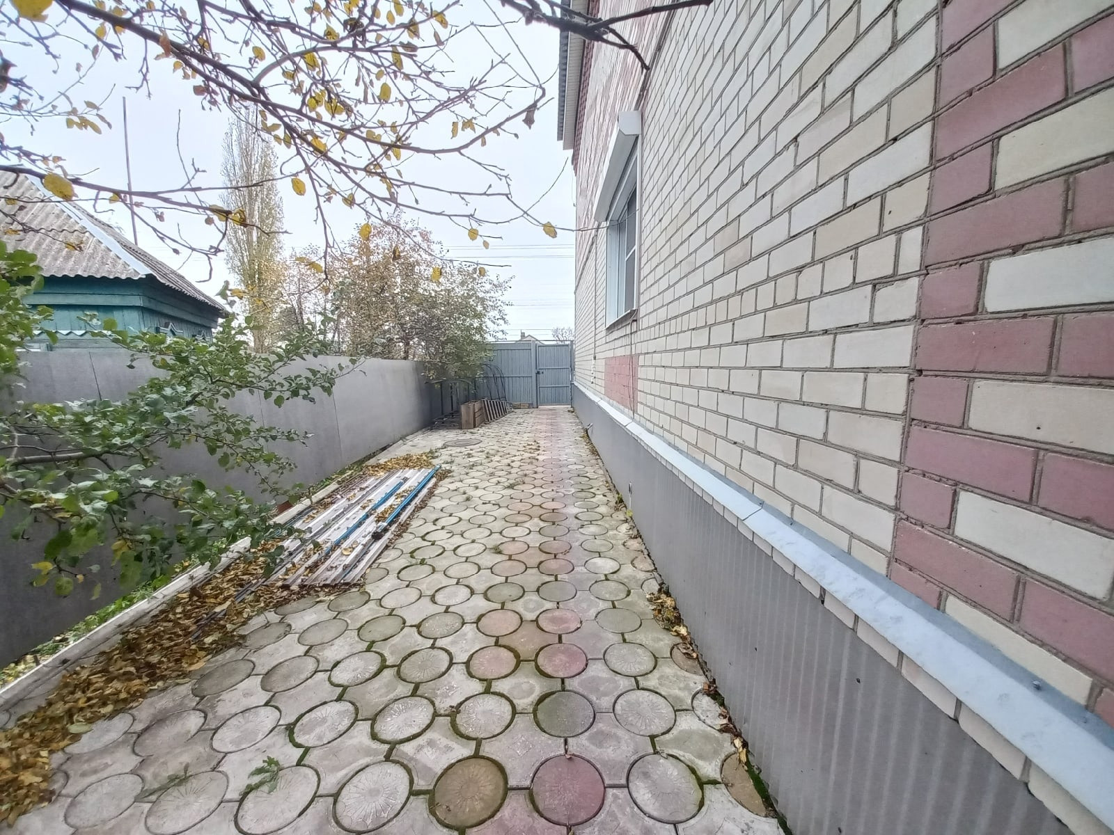 Дорожки во дворе выложены тротуарной плиткой.