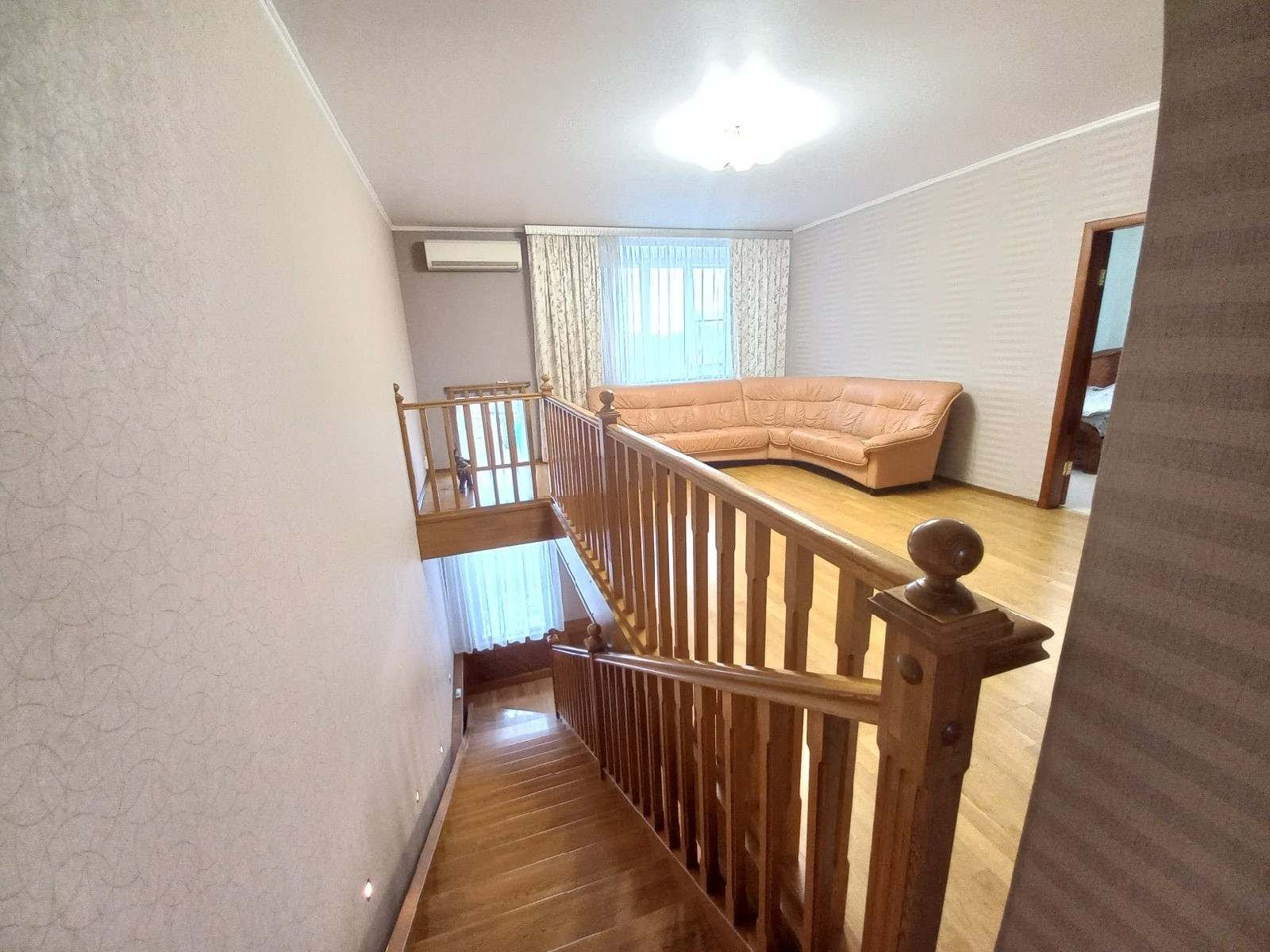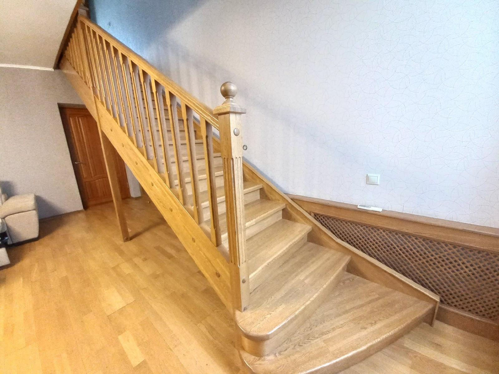 Надёжная дубовая лестница, изготовленная по индивидуальному заказу.