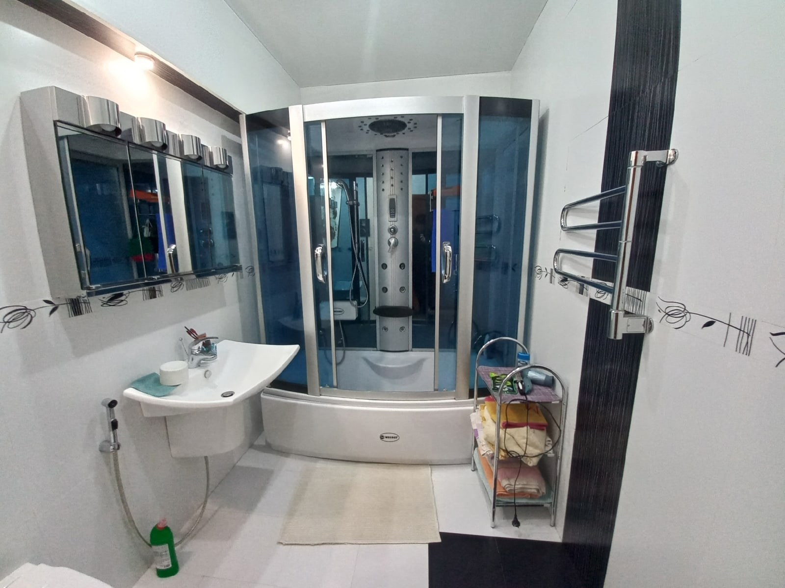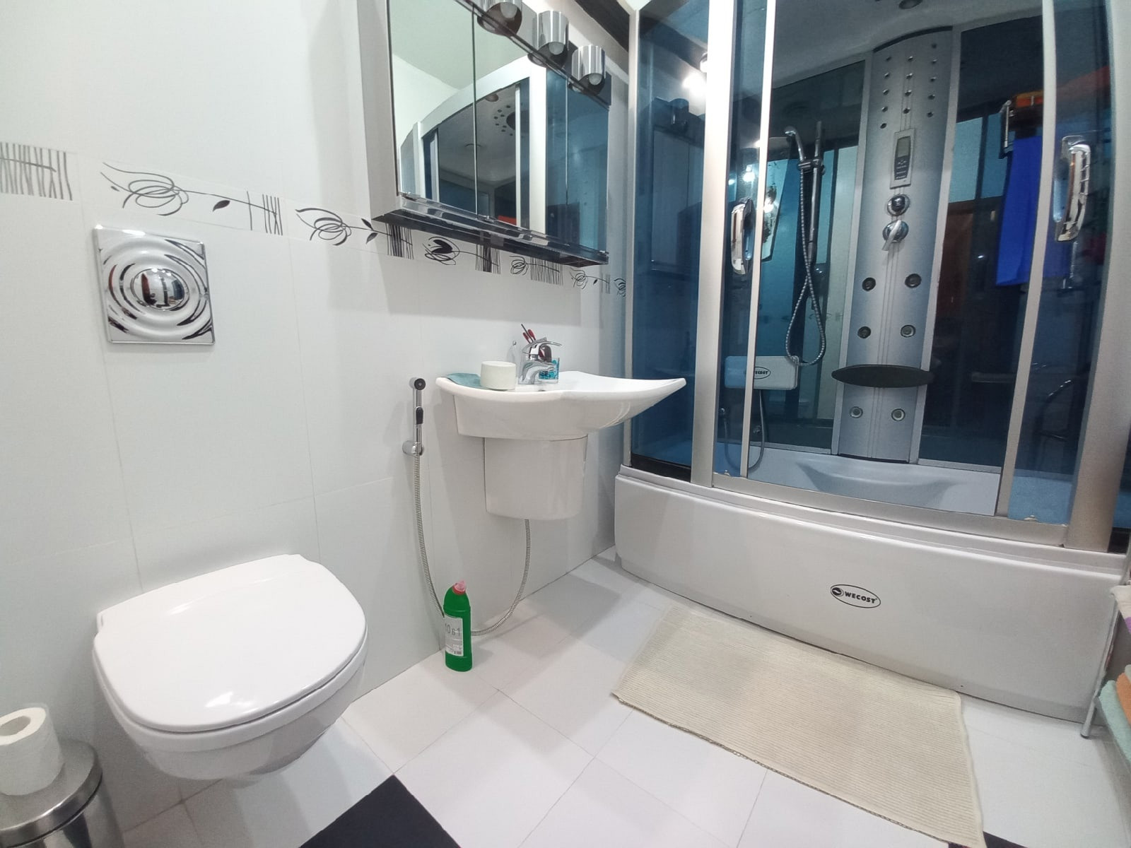 На 2 этаже просторный совмещённый санузел в качественной, дорогой плитке со СТИЛЬНОЙ ДУШЕВОЙ КАБИНОЙ с большим функционалом и раковиной с гигиеническим душем-биде.