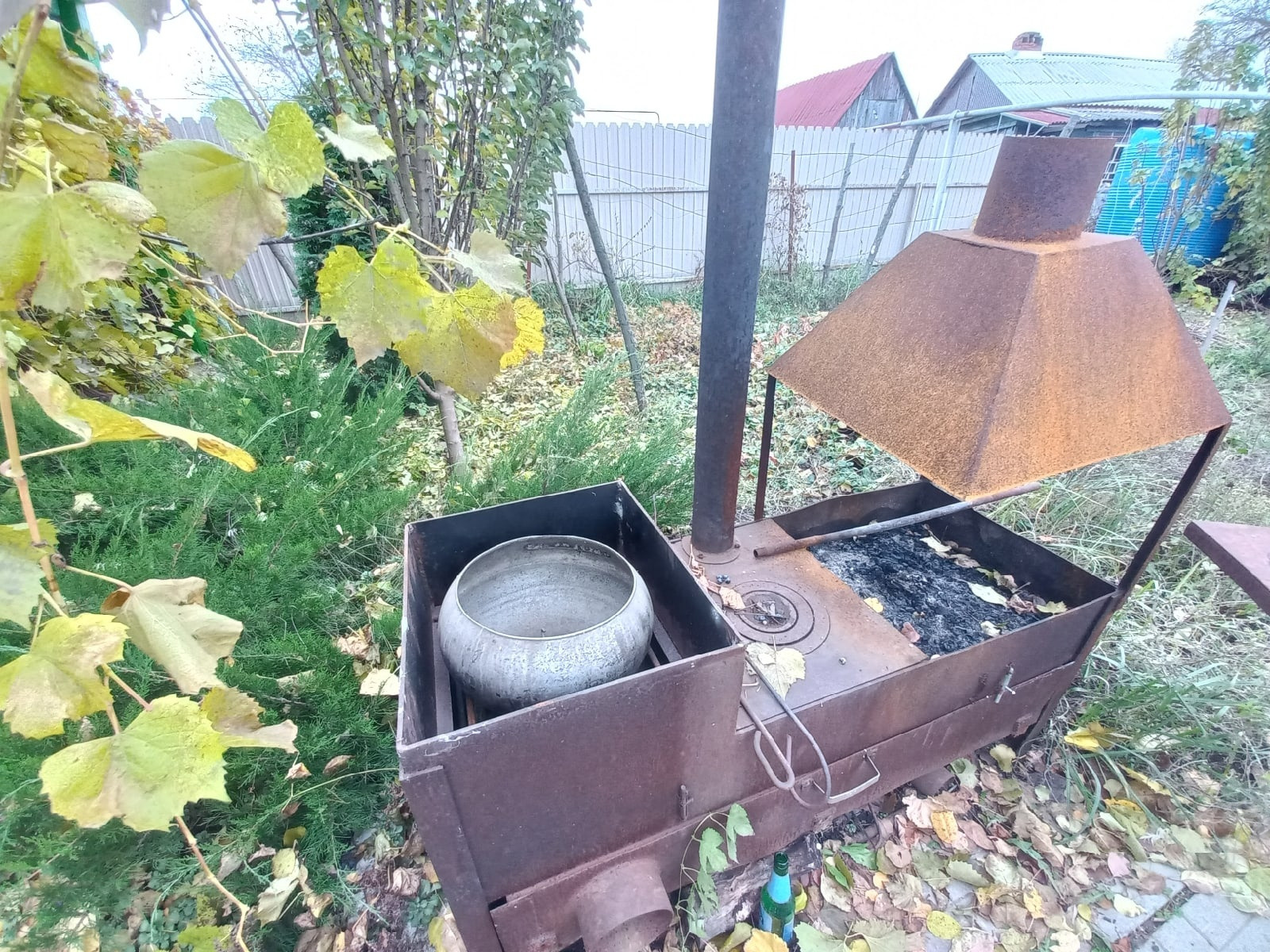 Эксклюзивный мангал с казаном и чугунной плитой с кольцами.