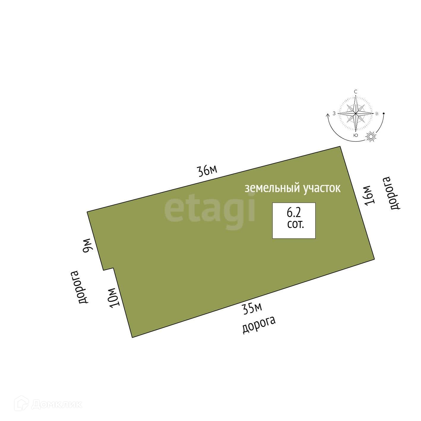 Площадь участка 6.2 сот.