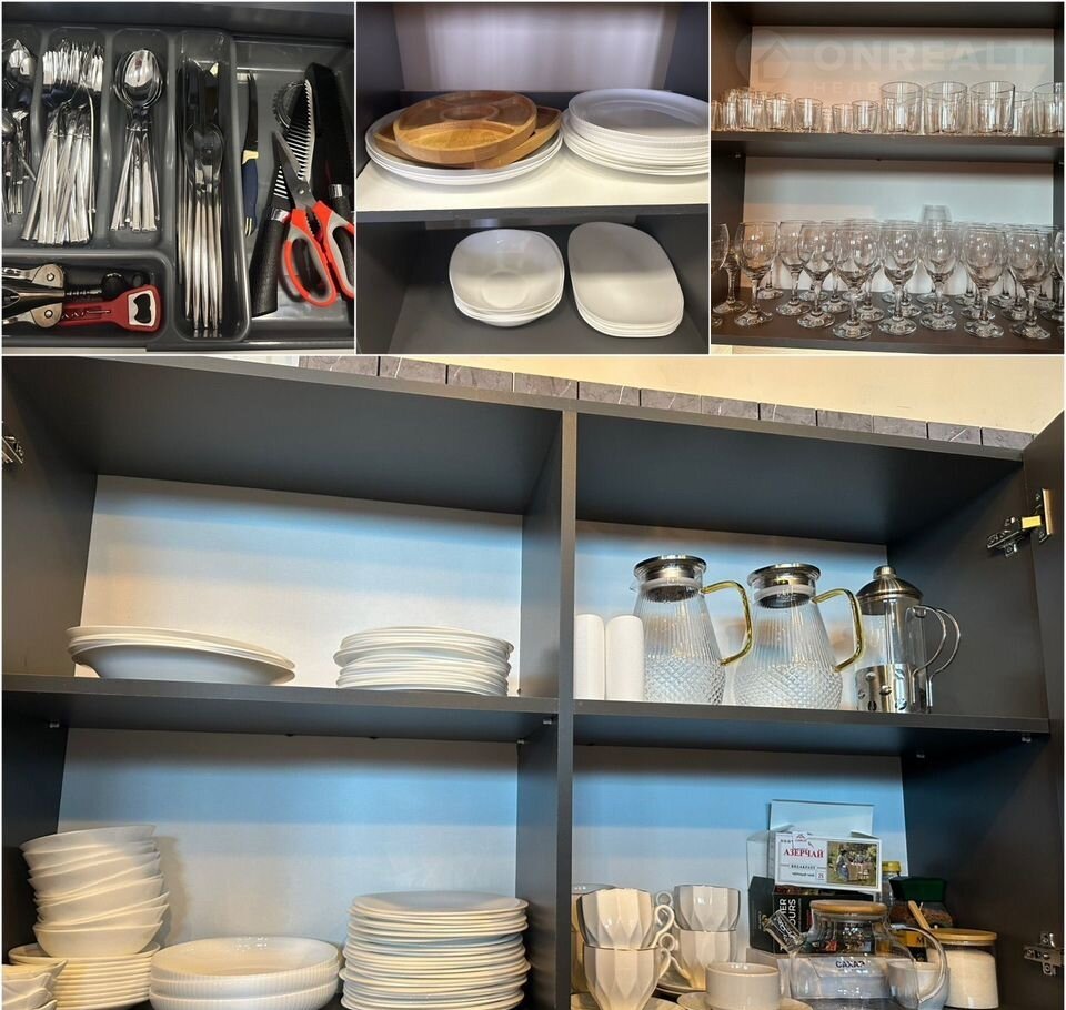 — Кухня со всем необходимым для праздника: посуда, столовые приборы, кухонная техника (холодильник, морозилка, микроволновая печь, чайник), кулер с питьевой водой