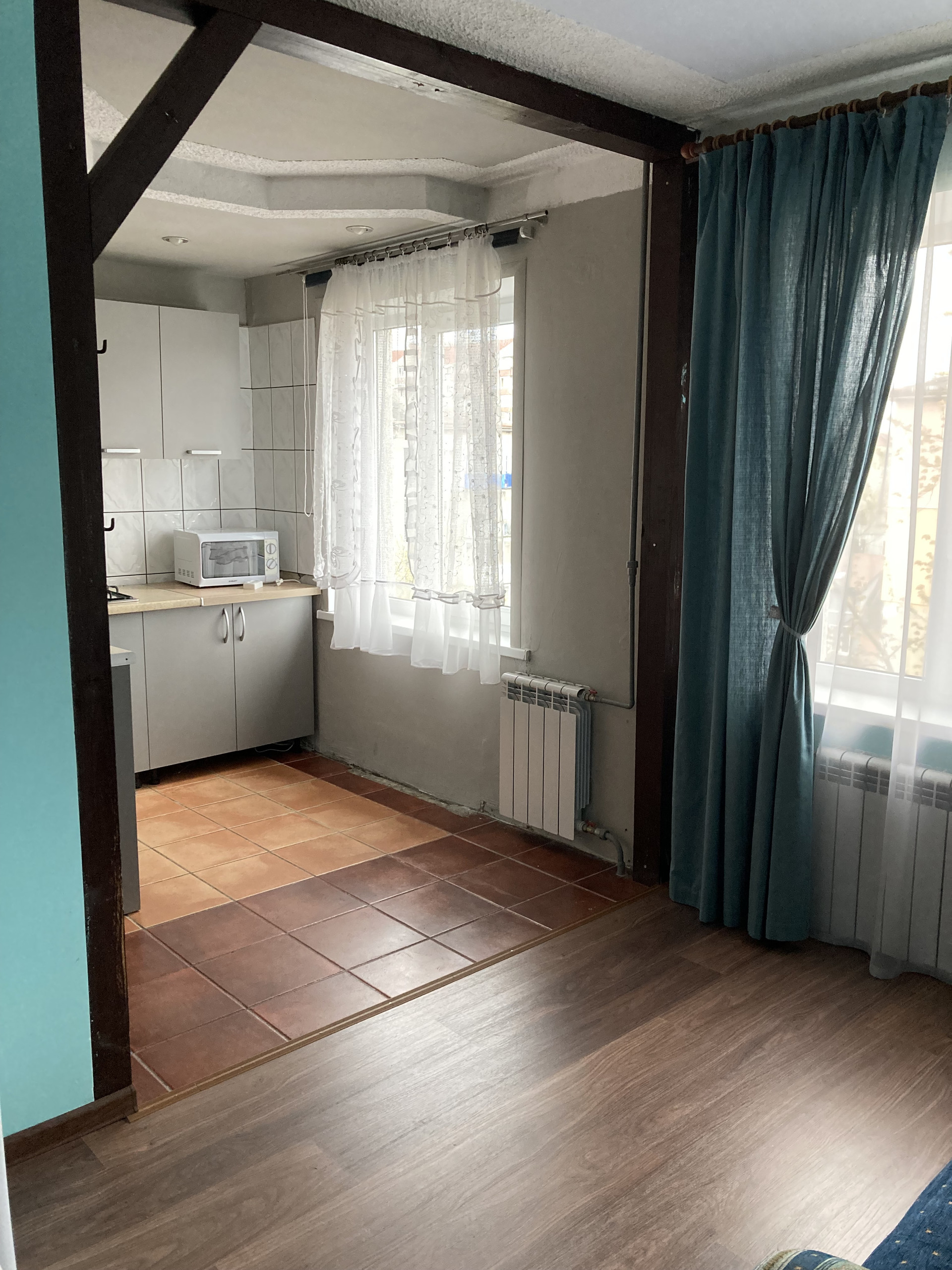 Квартира в центре города. Вся инфраструктура рядом: школа, детский сад, аптека, магазины, рынок. До моря 15 минут прогулочным шагом. Квартира не угловая. Сверху - технический этаж. Теплая и очень светлая. Комнаты изолированные. Кухня-столовая. Есть кладовая и гардеробная. Мебель и бытовая техника - по дополнительному соглашению сторон.