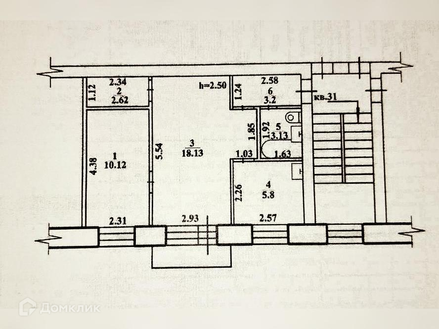 2-комнатная квартира, 43 м2, этаж 3 / 3, на продажу в Барабинске, Коммунистическая улица, 16