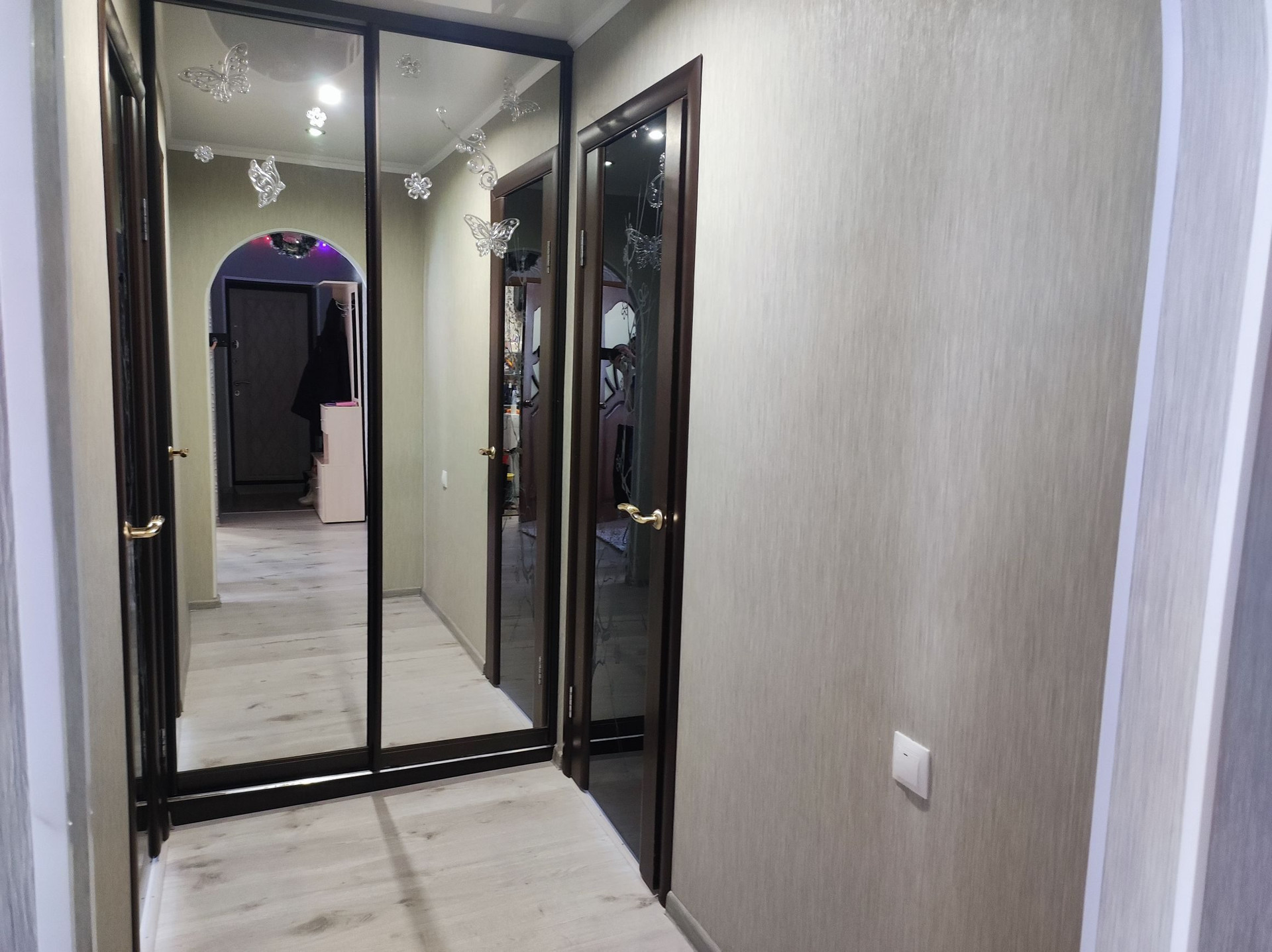 Продам квартиру. В 2022 году был сделан ремонт. В 2 комнатах постелен  линолеум, в зале, на кухне и в прихожей ламинат. Везде натяжные потолки. На кухне остаётся встроенный кухонный гарнитур. В ванной остаётся большой водонагреватель. Так же имеется большая гардеробная, очень вместительная. Новые входные двери. Во дворе есть детские площадки с одной стороны дома и с другой. В соседнем доме продуктовый магазин. Рядом автобусная остановка. В 2 минутах детский сад №6, 5 минутах школа №92. Так же 5-10 минутах вокзал, супермаркеты, аптеки, торговые центры. Всё очень близко, в шаговой доступности.