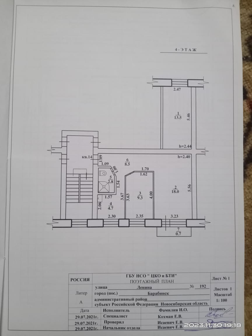 3-комнатная квартира, 56.9 м2, этаж 4 / 5, на продажу в Барабинске, улица Ленина, 192