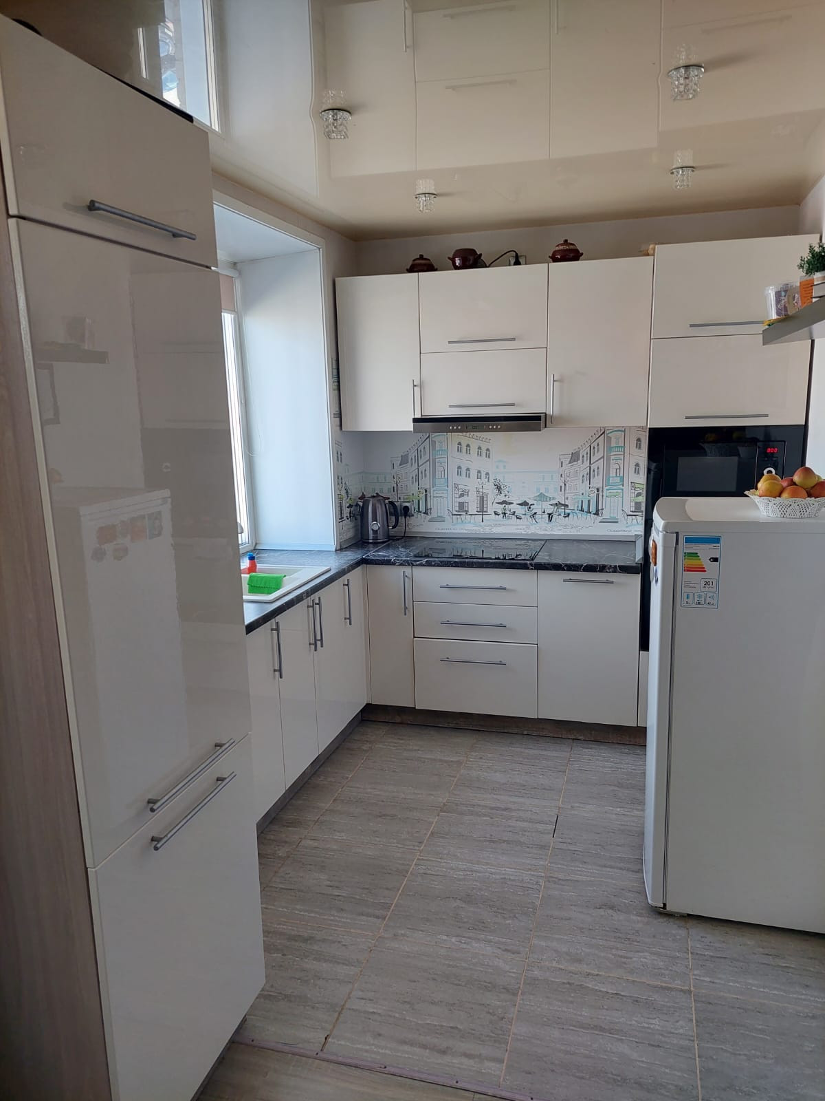 В квартире выполнен качественный ремонт в приятных нейтральных тонах, создающих ощущение тепла и уюта. Входная дверь с надежными европейскими замками. Качественные межкомнатные двери. Стены идеально выровнены и отделаны обоями. На кухне уложен керамогранит. Потолки во всей квартире натяжные, продумана система освещения.