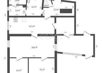 Общая площадь: 61.5 м2
