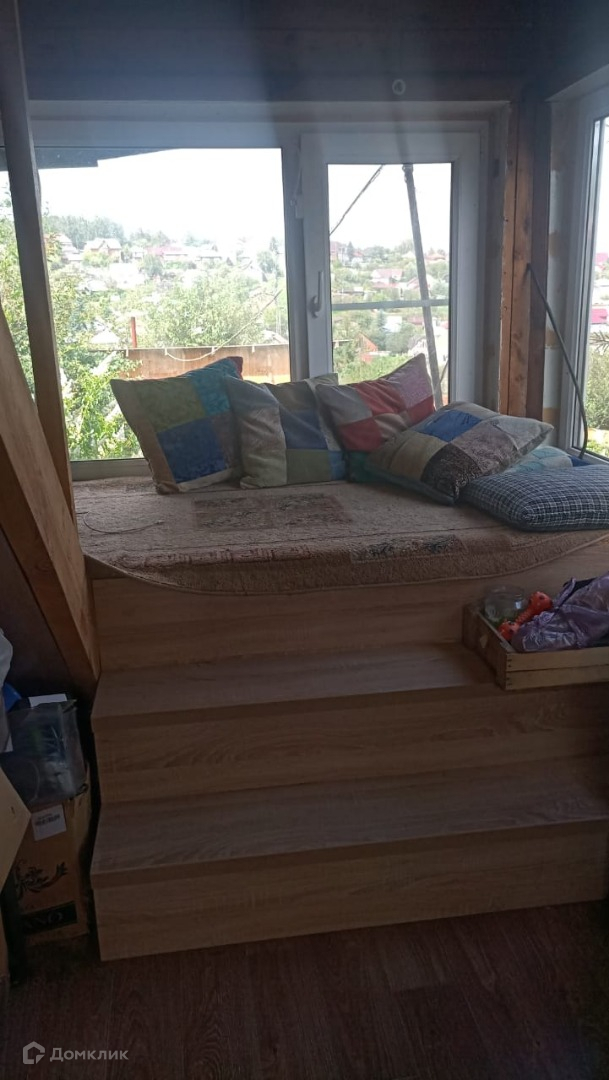 Дом каркасный. Утепленный пол. Пластиковые окна. На первом этаже большая кухня-гостинная, на втором этаже комната для отдыха.