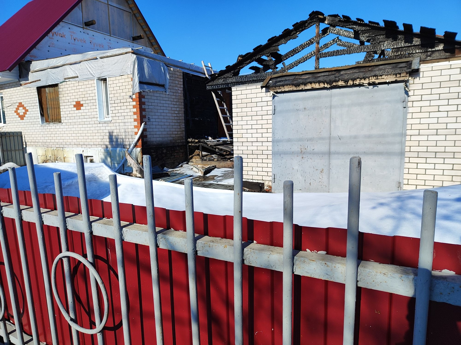 Дом, выделен квартирой на участке 4,42 сотки земли, гараж на одну машину, баня, санузел в доме, газовое отопление,  подвал с окнами. Повреждения крыши дома, перегородок в доме ,и крыши гаража. Участок огорожен, посадки: плодовые деревья и кустарники, остановка рядом,так же рядом продуктовые магазины, транспорт маршрут 144. Территория выложена брусчаткой.