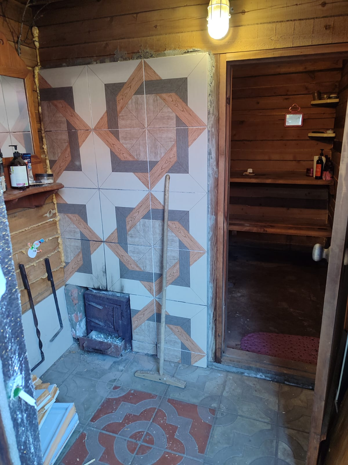 Двор выложен плиткой.