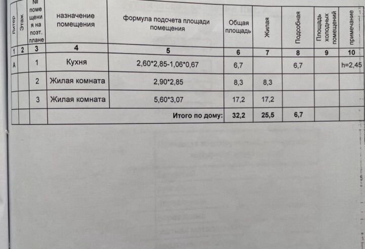Общая площадь 32.2 м2