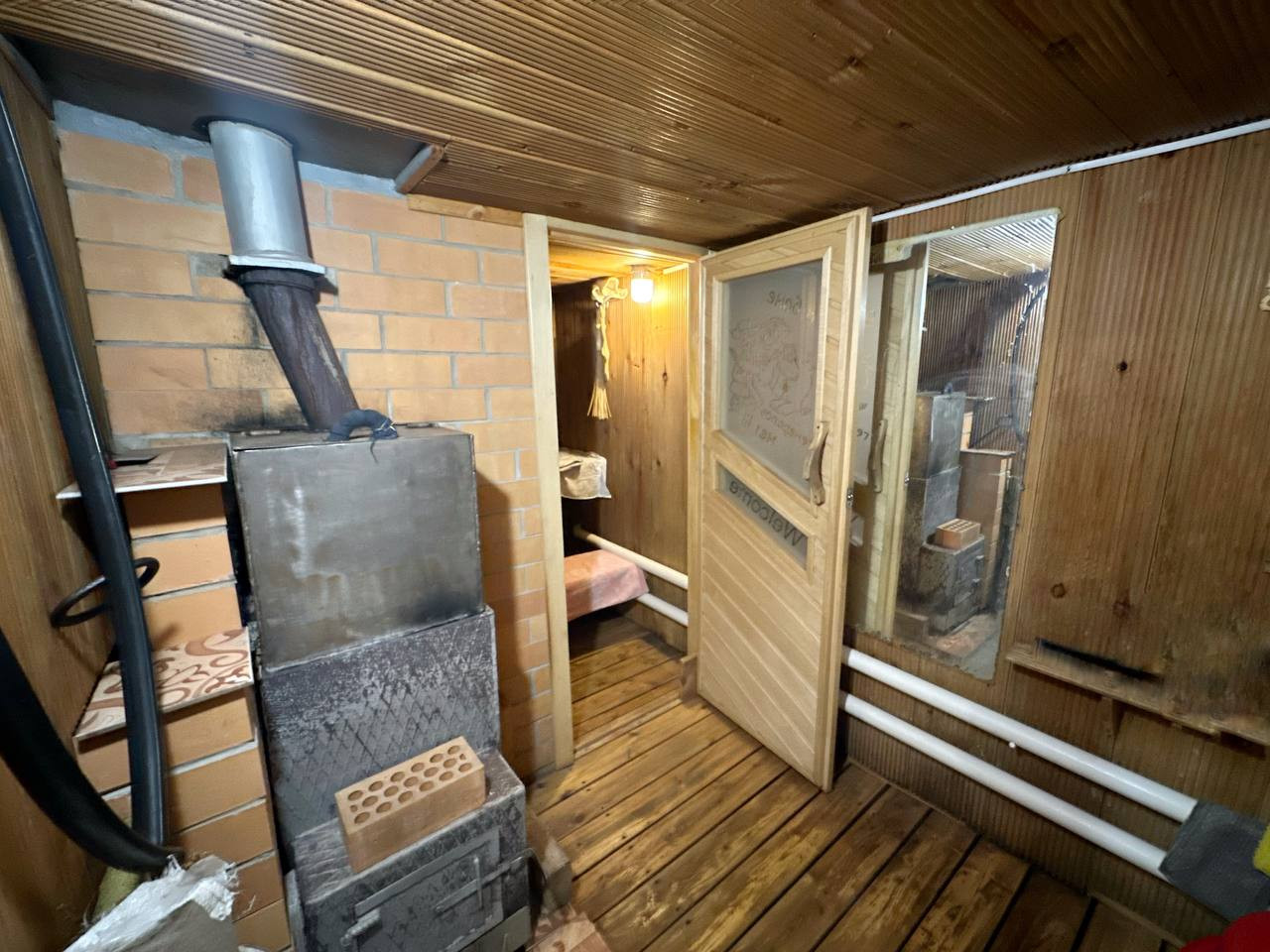Отопление газовое, что позволяет поддерживать необходимую температуру в доме в любое время года и экономить на оплате за тепло. Есть  хорошая баня, вход осуществляется прям через теплую пристройку дома, что очень удобно.